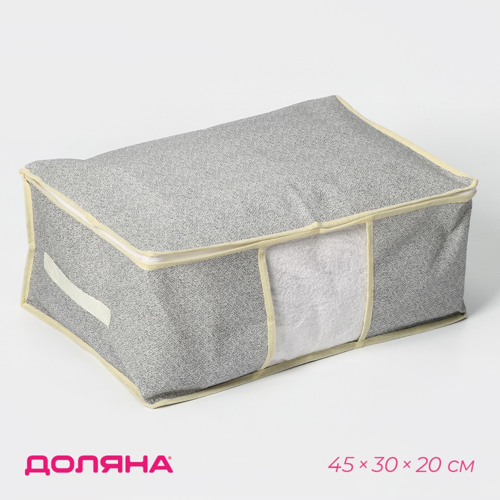 Кофр для хранения доляна «европа», 45x30x20 см, цвет серый. Кофр для хранения вещей позволит навести порядок дома раз и навсегда! Подходит для удобного хранения постельного белья, сезонный одежды, детской одежды, одеял, пледов. Преимущества: Нейтральная цветовая гамма кофров впишется в интерьер спальной, гардеробной или гостиной комнаты, а также в детскую комнату. Органайзеры для хранения легко очистить от загрязнений и компактно сложить в кладовку. Идеально подходит для хранения, удобен для размещения в шкафу. Цвет: Серый Форма: Прямоугольная Ширина, см: 45 Высота, см: 20 Глубина, см: 30 parts count: 0 Количество отделений: 1 tnved: 6307909800 Крышка: Да Материал: ПВХ Материал: Флизелин Форма: Прямоугольник  развернуть описание ▼