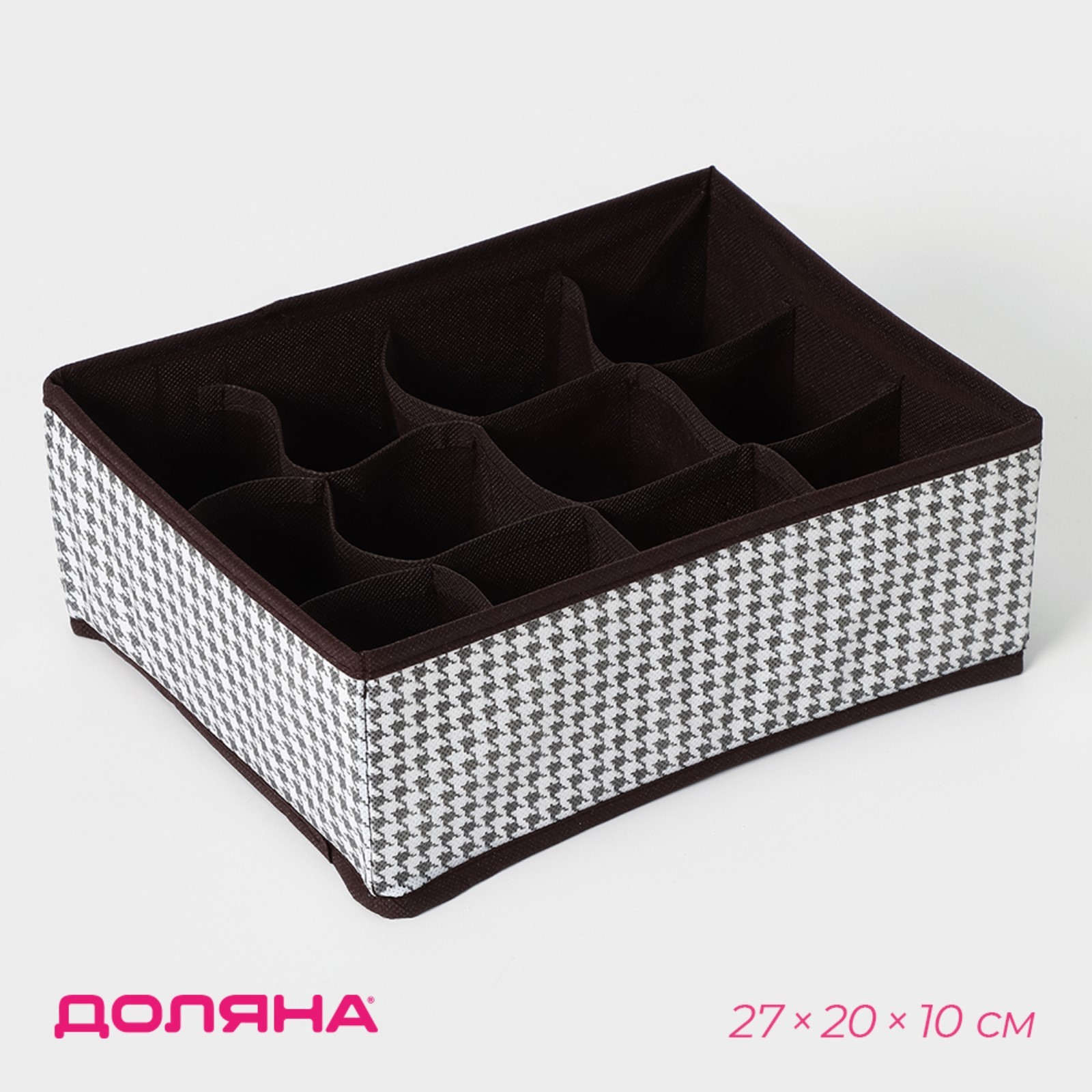 Органайзер для хранения белья доляна «вилли», 12 ячеек, 27x20x10 см, бело-коричневый