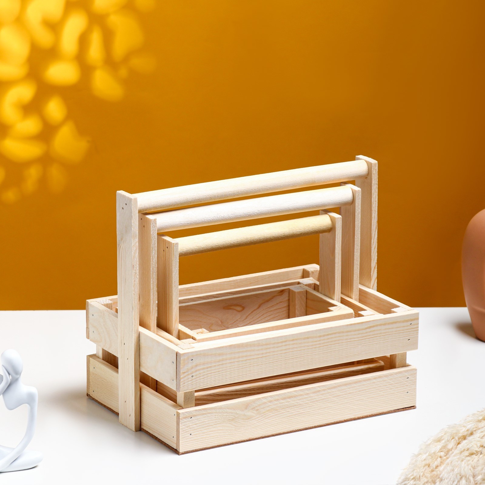 Набор деревянных кашпо «модерн», 3 шт., с ручкой