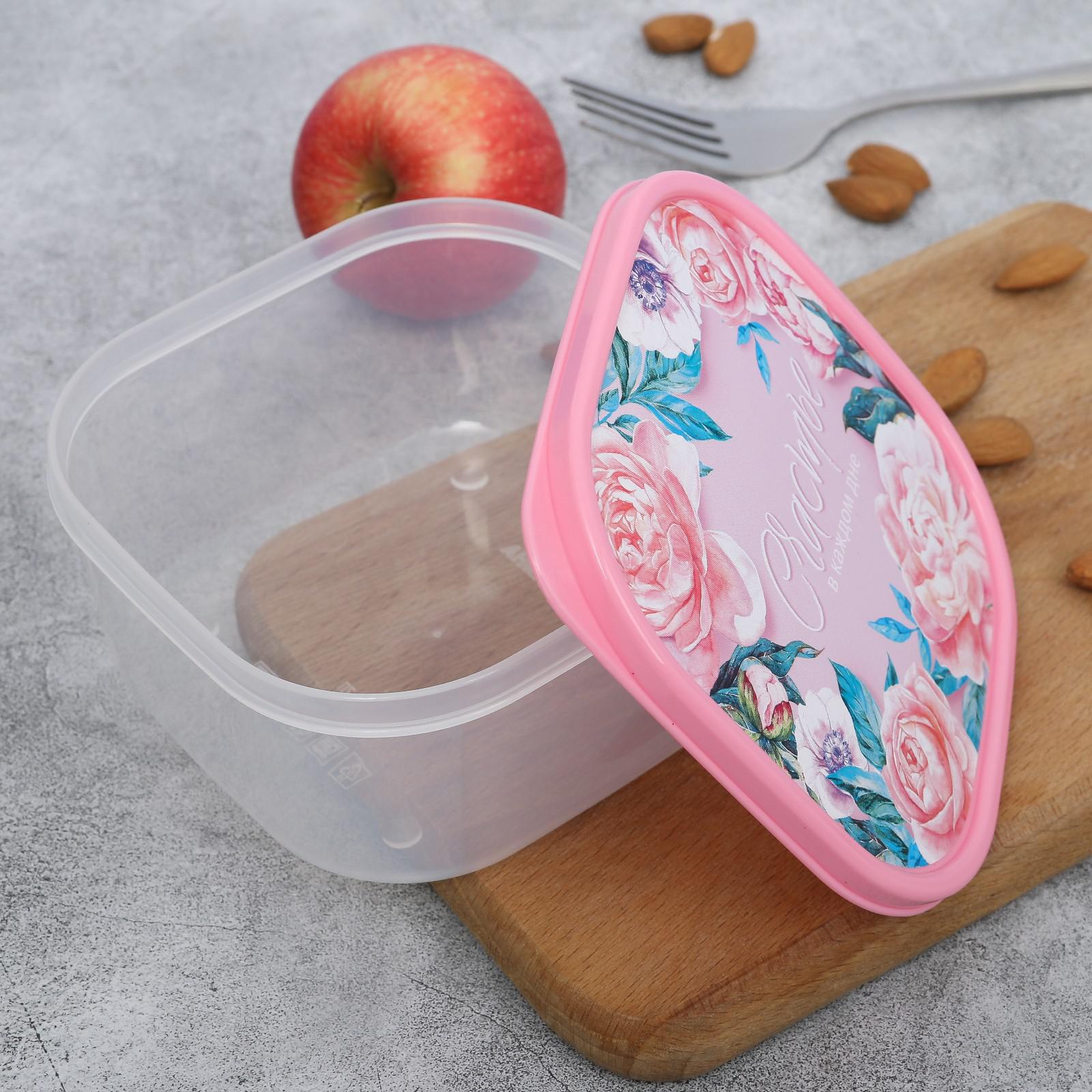 Ланч - бокс квадратный «счастье в каждом дне», 700 мл. Ланч-бокс от торговой марки FoodVibes - это удобное и практичное решение для переноса и хранения пищи. Изготовленный из полипропилена, материала, известного своей прочностью и долговечностью, этот ланч-бокс гарантирует долгий срок службы. Размеры ланч-бокса составляют 6,5 см х 12,5 см х 12,5 см а его вес - всего 75 г. Квадратная форма и объем в 700 мл обеспечивают достаточно места для хранения различных видов пищи, делая его идеальным для обеда или перекуса. Особенностью этого ланч-бокса является герметичная крышка, которая предотвращает проливание и сохраняет свежесть продуктов. В дополнение к этому, ланч-бокс можно использовать в СВЧ-печи, что делает его удобным для подогрева пищи. FoodVibes - это торговая марка, известная своим качеством и надежностью. Их ланч-бокс - это не только удобный аксессуар для переноса пищи, но и стильный элемент, который подчеркнет вашу индивидуальность. Набор:Нет|Цвет:Прозрачный|Форма:Квадратная|Объём, л:0.7|Объём, мл:700|Рисунок:Да|Материал:Пластик|Герметичная крышка:Да|Наличие столовых приборов:Нет|Можно мыть в посудомоечной машине:Да|Можно использовать в СВЧ-печи:Да|Цвет крышки:Розовый|Особенности :Герметичный|Страна:Россия  развернуть описание ▼