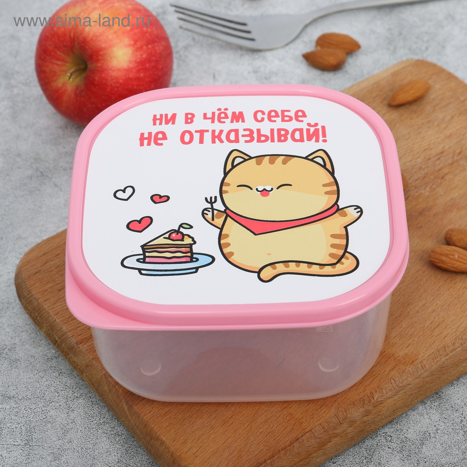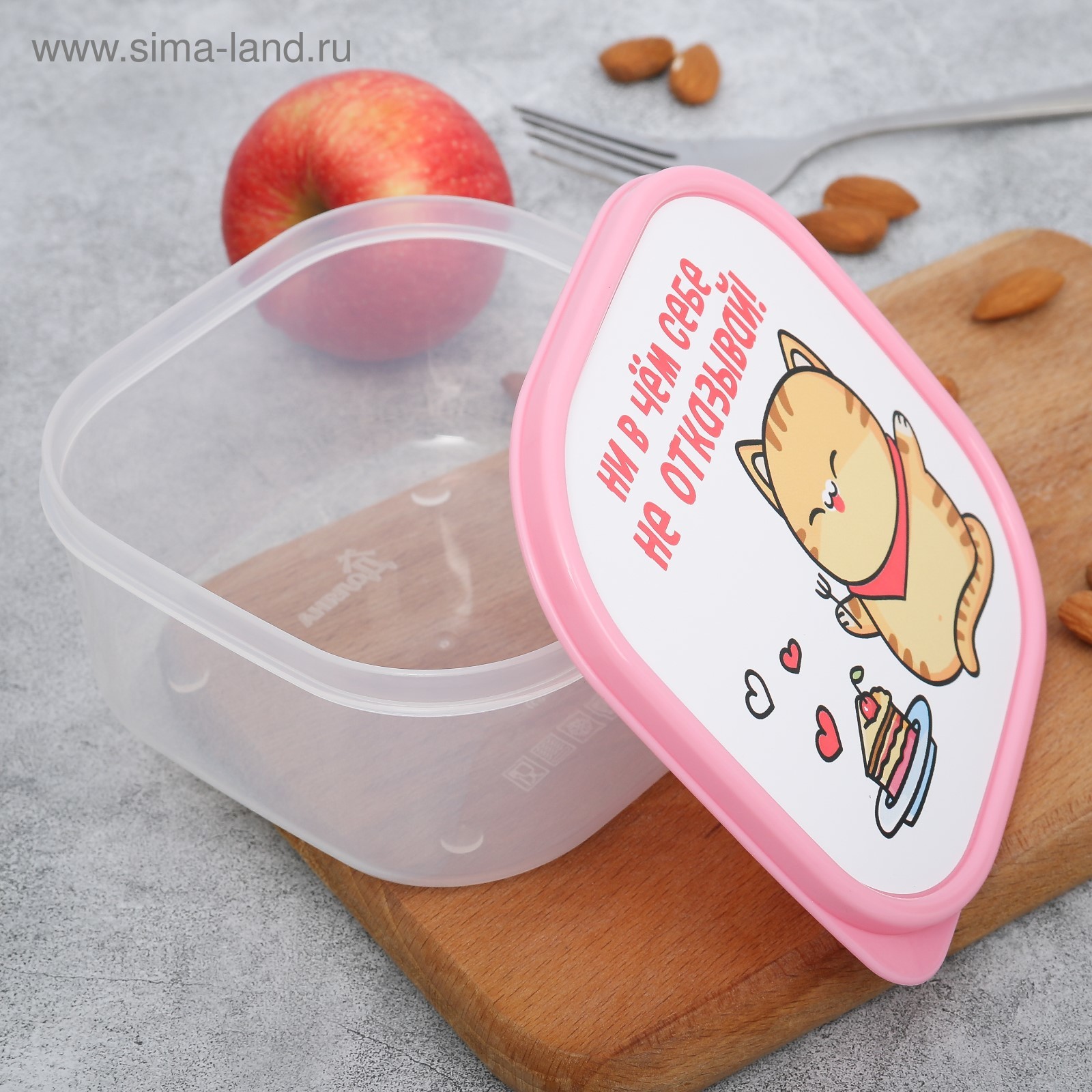Ланч-бокс квадратный «ни в чём себе не отказывай», 700 мл. Ланч-бокс от торговой марки FoodVibes - это удобное и практичное решение для переноса и хранения пищи. Изготовленный из полипропилена, материала, известного своей прочностью и долговечностью, этот ланч-бокс гарантирует долгий срок службы. Размеры ланч-бокса составляют 6, 5 см х 12, 5 см х 12, 5 см а его вес - всего 75 г. Квадратная форма и объем в 700 мл обеспечивают достаточно места для хранения различных видов пищи, делая его идеальным для обеда или перекуса. Особенностью этого ланч-бокса является герметичная крышка, которая предотвращает проливание и сохраняет свежесть продуктов. В дополнение к этому, ланч-бокс можно использовать в СВЧ-печи, что делает его удобным для подогрева пищи. FoodVibes - это торговая марка, известная своим качеством и надежностью. Их ланч-бокс - это не только удобный аксессуар для переноса пищи, но и стильный элемент, который подчеркнет вашу индивидуальность. Цвет: Белый Цвет: Прозрачный Форма: Квадратная parts count: 0 Объём, л: 0.7 Объём, мл: 700 tnved: 3924900009 Материал: Пластик Герметичная крышка: Да Наличие столовых приборов: Нет Можно мыть в посудомоечной машине: Да Можно использовать в СВЧ-печи: Да Форма: Квадрат, куб  развернуть описание ▼