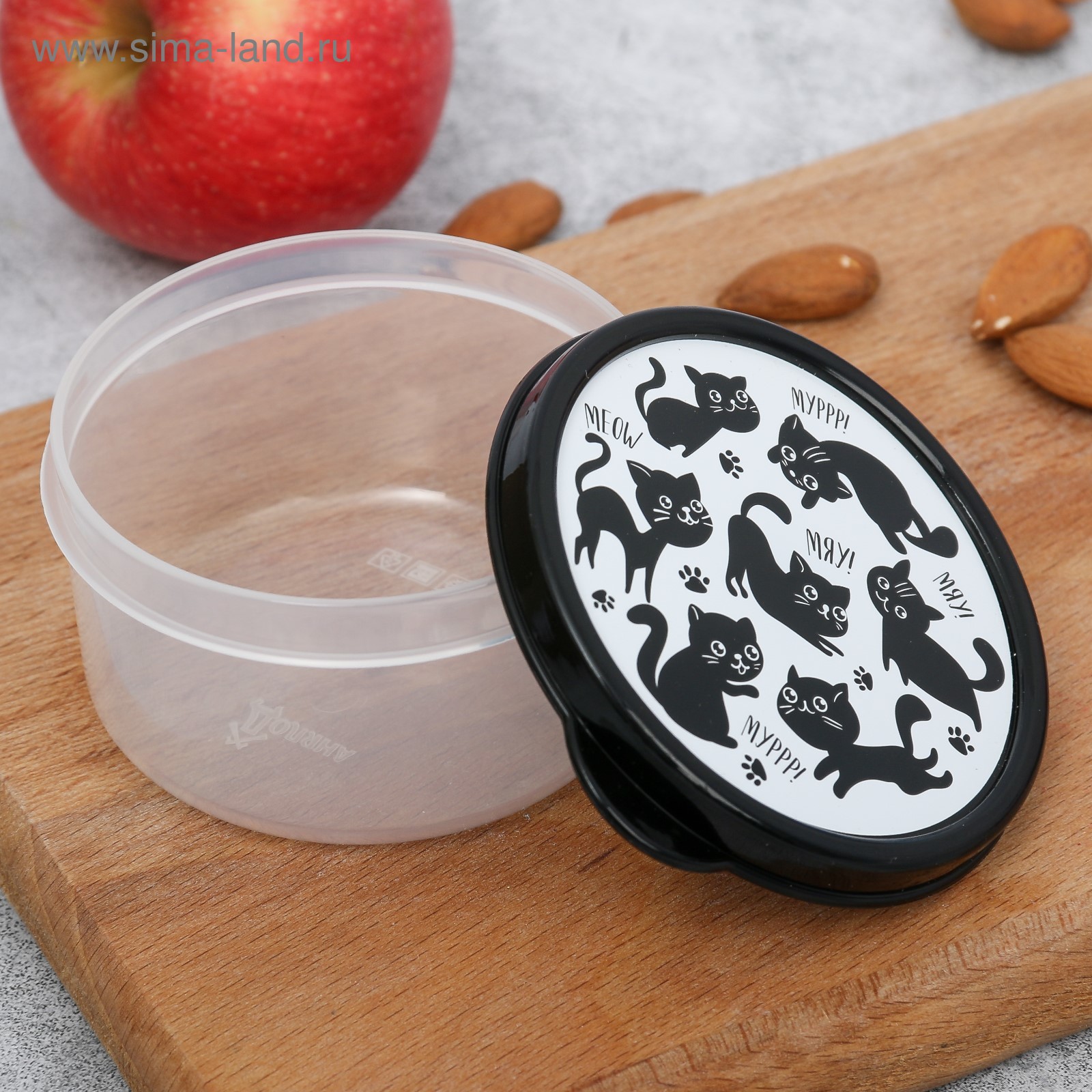 Ланч-бокс круглый «мур, мяу», 150 мл. Ланч-бокс от торговой марки FoodVibes - это яркий и стильный аксессуар, который станет незаменимым помощником в повседневной жизни. Изготовленный из качественного пластика, этот ланч-бокс совмещает в себе прочность, легкость и долговечность. С размерами 4, 5 см х 8 см х 8, 5 см и весом всего 21 г, этот мини-ланч-бокс идеально подходит для переноса небольших перекусов или десертов. Его круглая форма и объем в 150 мл обеспечивают удобство использования и хранения. Герметичная крышка гарантирует сохранность содержимого, а возможность использования в СВЧ-печи делает его еще более функциональным. Яркий дизайн крышки придает ланч-боксу неповторимый и модный вид. Ланч-бокс от FoodVibes - это отличный выбор не только для личного использования, но и в подарок. С его помощью вы можете выразить свою заботу и внимание, подарив его близким и друзьям. Этот ланч-бокс не только удобен в использовании, но и придает яркость и оригинальность вашему стилю. Цвет: Чёрный Форма: Круглая parts count: 0 Объём, л: 0.15 Объём, мл: 150 tnved: 3924900009 Материал: Пластик Герметичная крышка: Да Наличие столовых приборов: Нет Можно мыть в посудомоечной машине: Да Можно использовать в СВЧ-печи: Да Форма: Круг, шар, цилиндр  развернуть описание ▼