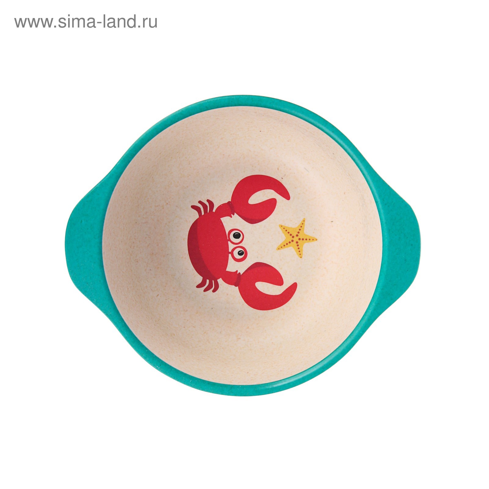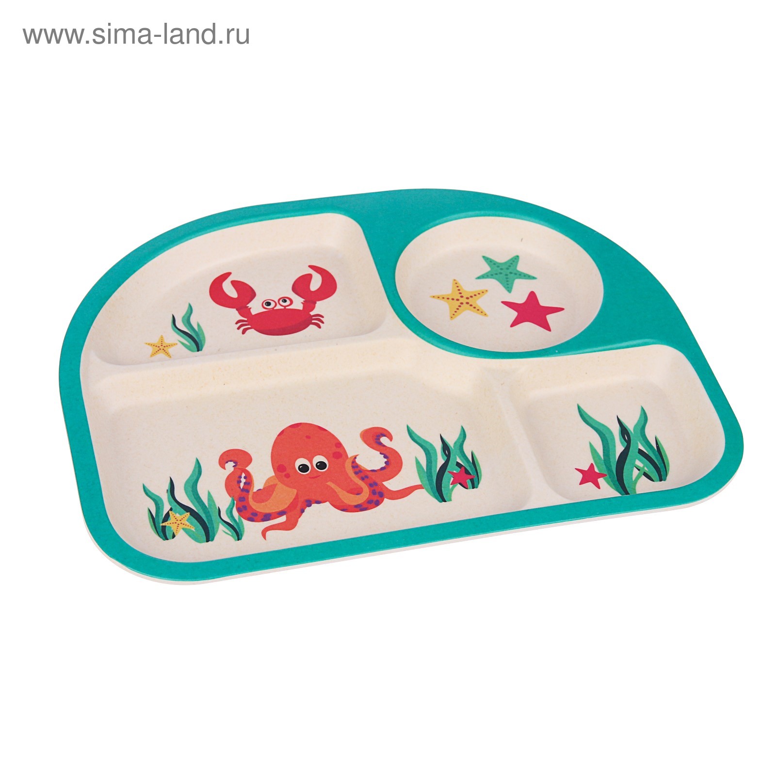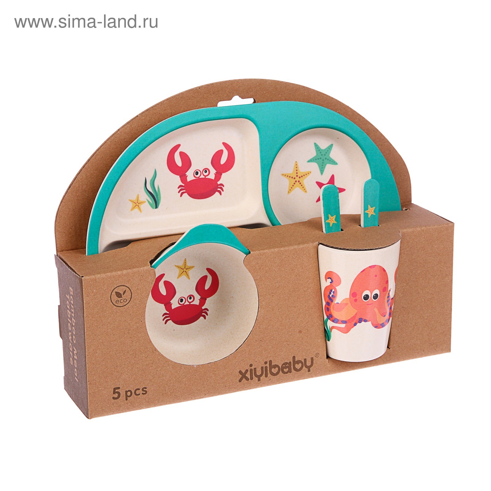 Набор детской посуды из бамбука «морские жители», 5 предметов: тарелка, миска, стакан, столовые приборы