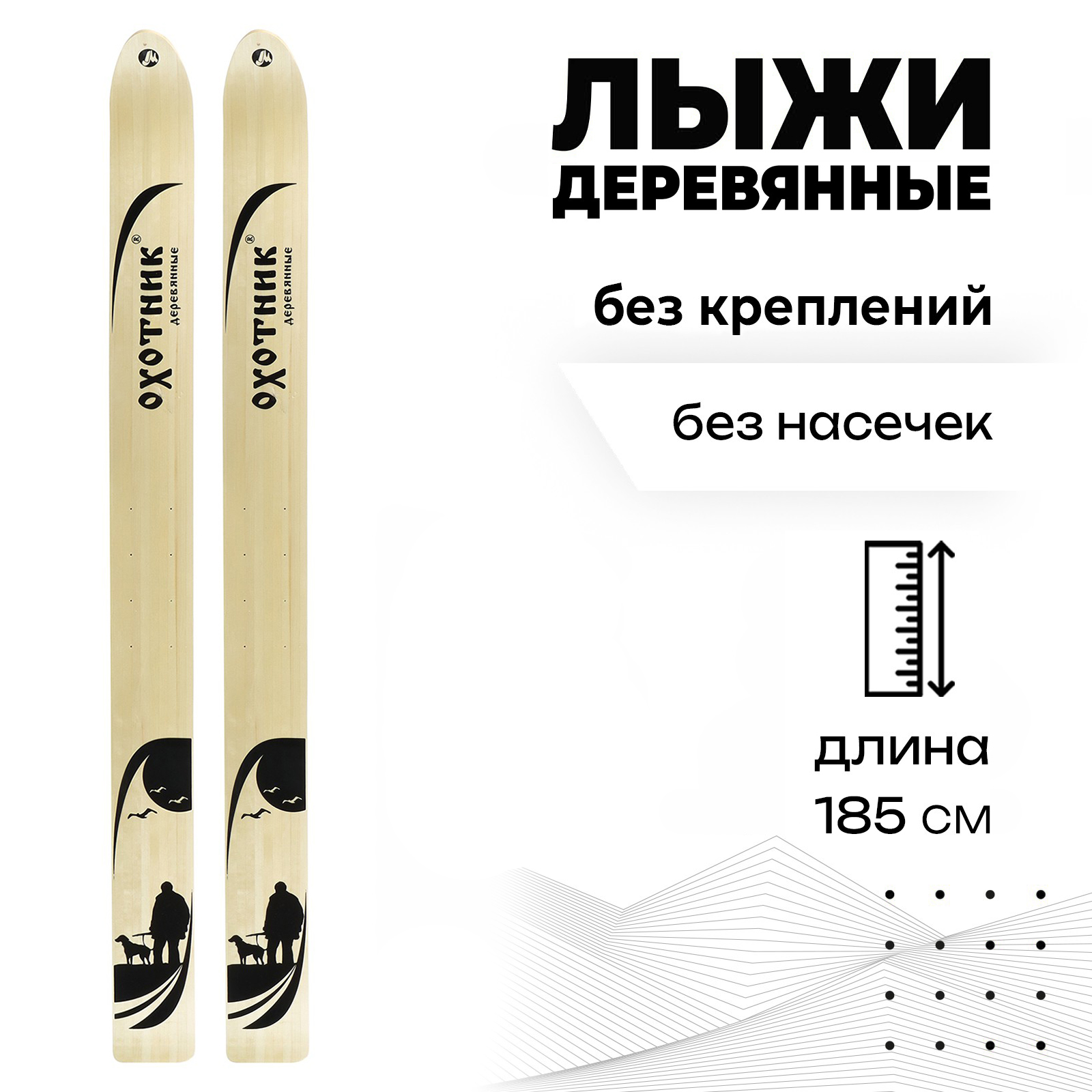 Лыжи деревянные охотничьи, 185 см. Пригодятся охотнику или рыбаку, любителю зимних прогулок по лесу или специалисту, чья деятельность предполагает передвижение по снегу с грузом на спине. Благодаря широким полозьям даже крупный человек со снаряжением сможет передвигаться по сугробам и не проваливаться. Ширина лыж 150 мм, длина 185 см. Правила хранения: После каждого использования охотничьи лыжи следует очистить от снега, а после - вытереть насухо. По окончании сезона деревянные лыжи при необходимости просмолить. Хранить охотничьи лыжи следует в вертикальном положении, при этом пяточная часть лыж не должна касаться влажного пола, или в горизонтальном, на боковых гранях с опорой не менее, чем в трёх точках. Лыжи для хранения складывают скользящими поверхностями, скрепляют держателями (или веревкой) у основания носкового загиба и на расстоянии 5-6 см от среза пятки. Между лыжами в районе центра тяжести вставляют деревянный брусок толщиной 5-6 см. Не рекомендуется хранить охотничьи лыжи около отопительных приборов и на солнце. Цвет: Бежевый Длина, см: 185 Материал: Дерево Насечка: Нет Стиль катания: Для классического хода Крепления входят в комплект: Нет  развернуть описание ▼
