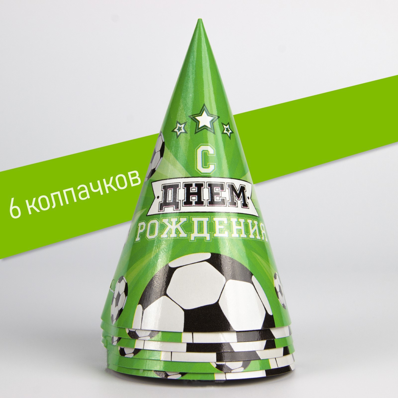Набор бумажной посуды одноразовый с днём рождения. футбол», 6 тарелок, 6 стаканов, 6 колпаков, 1 гирлянда