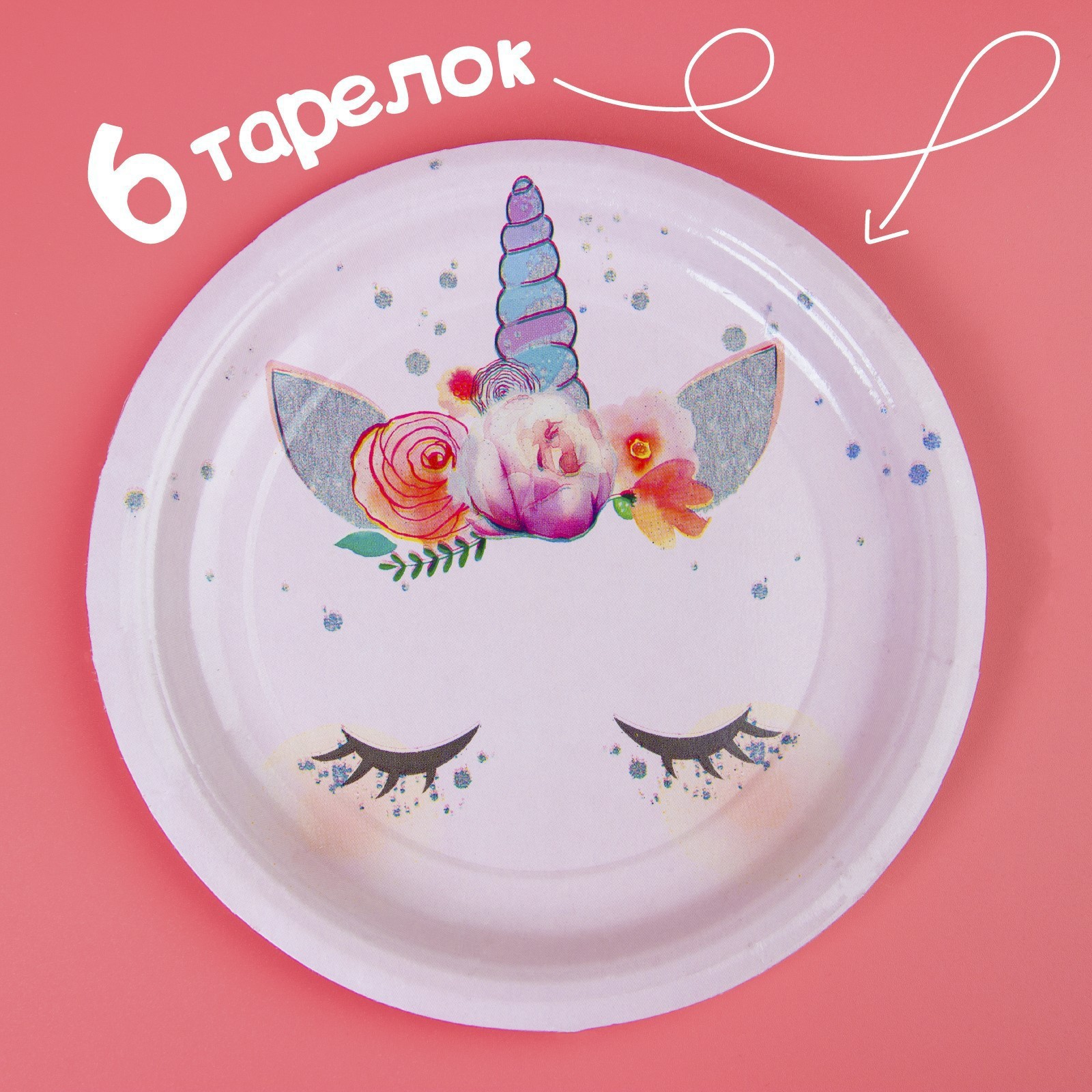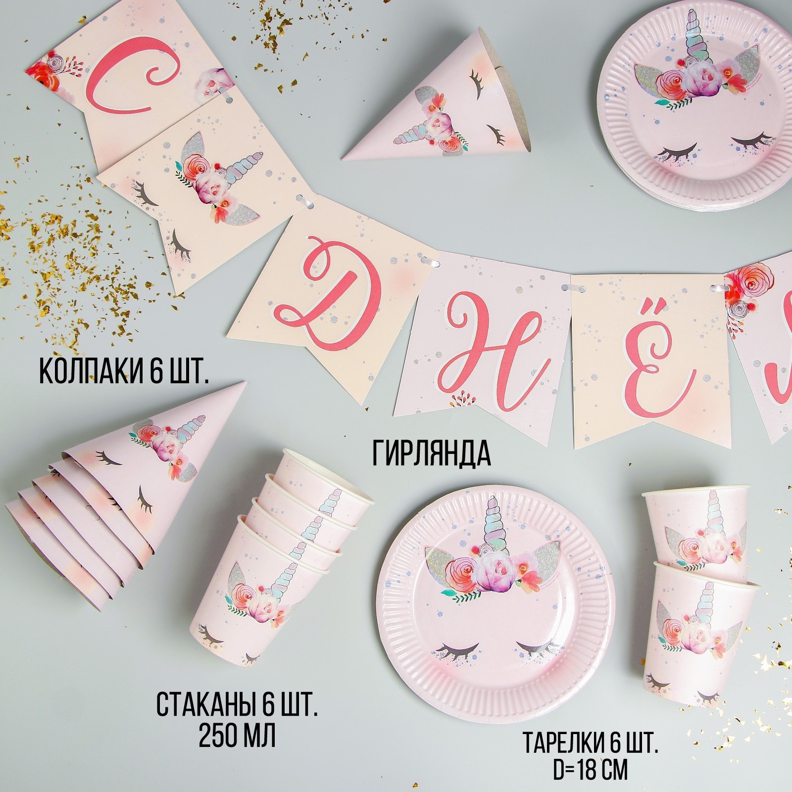 Набор бумажной посуды одноразовый единорог», 6 тарелок, 6 стаканов, 6 колпаков, 1 гирлянда