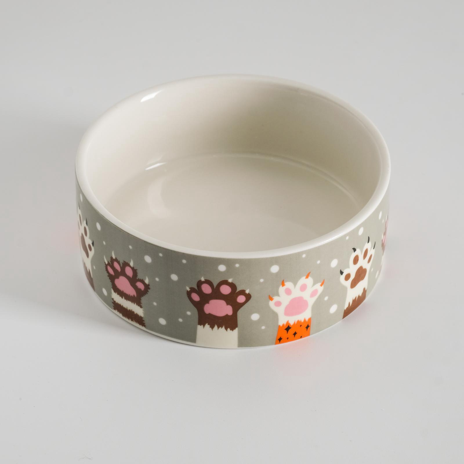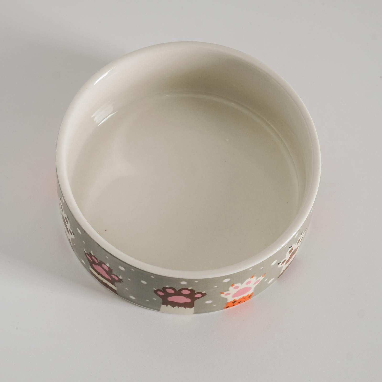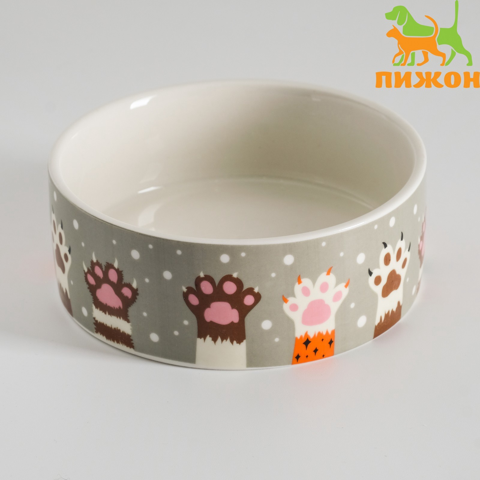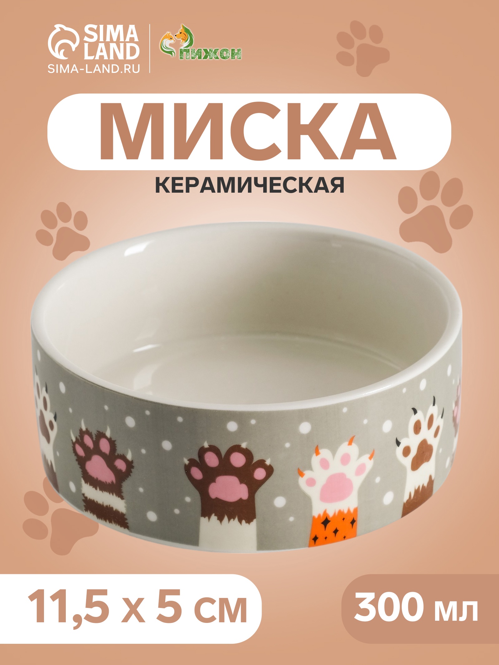 Миска керамическая «лапы» 300 мл - 11.5 11.5 5 см, бело-серая. Миска для собак и кошек вместительная, правильной формы для удобного приёма пищи. Миска подходит для всех видов домашних животных. Ветеринары рекомендуют керамические миски, так как они экологически чище. Нетоксичный материал оберегает здоровье и иммунитет ваших домашних животных. Она не впитывает и не выделяет запахов, что особенно важно для животных из-за хорошего обоняния. Ее можно можно мыть в посудомойке, также в миске смело можно разогревать еду в микроволновой печи. Цвет:Разноцветный|Форма:Круглая|Объём, мл:300|Рисунок:Да|Материал:Керамика|Вид:Миска|Особенности:Без особенностей|Вид:Одинарная|Страна:Китай  развернуть описание ▼