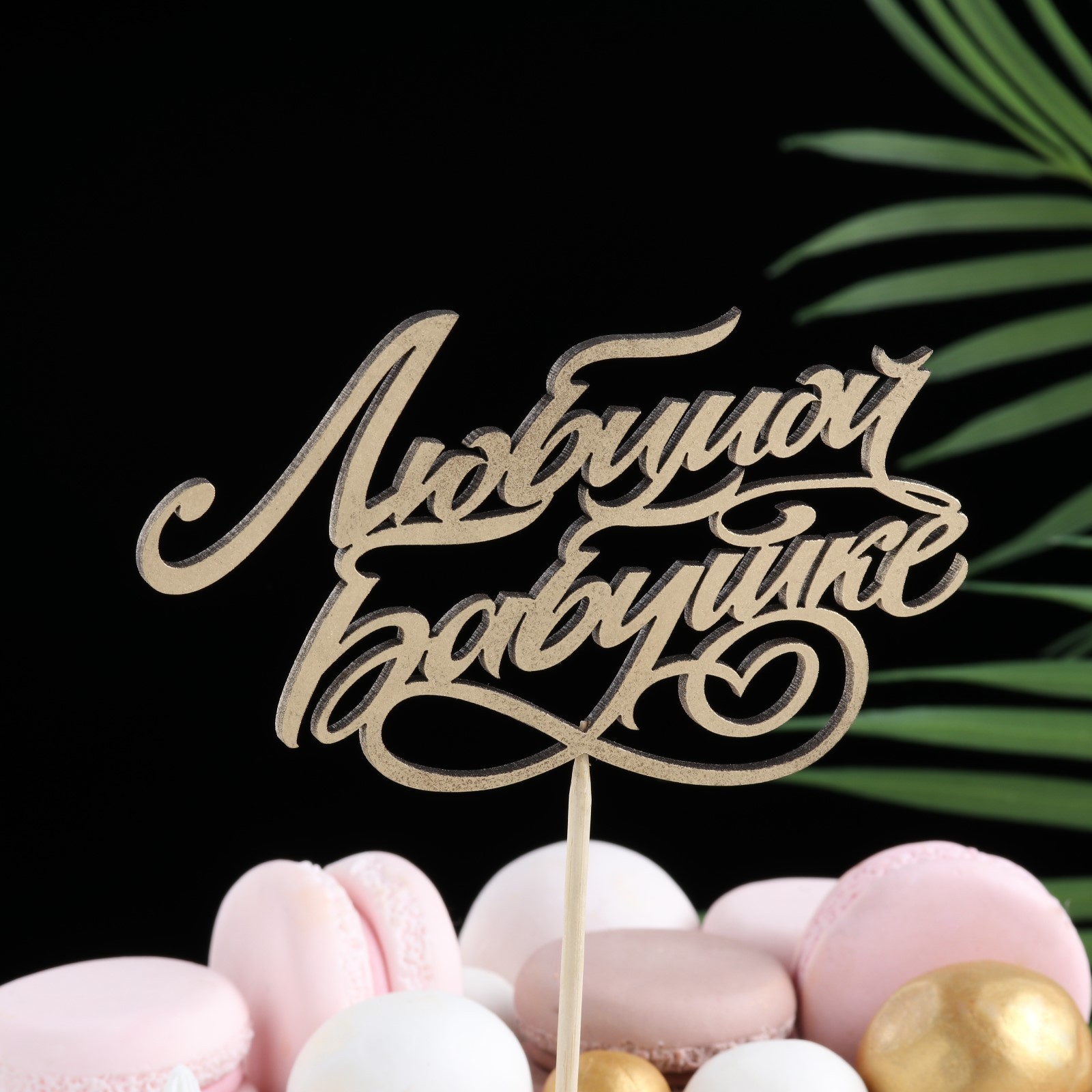 Топпер "любимой бабушке" на подвесе, золотой дарим красиво