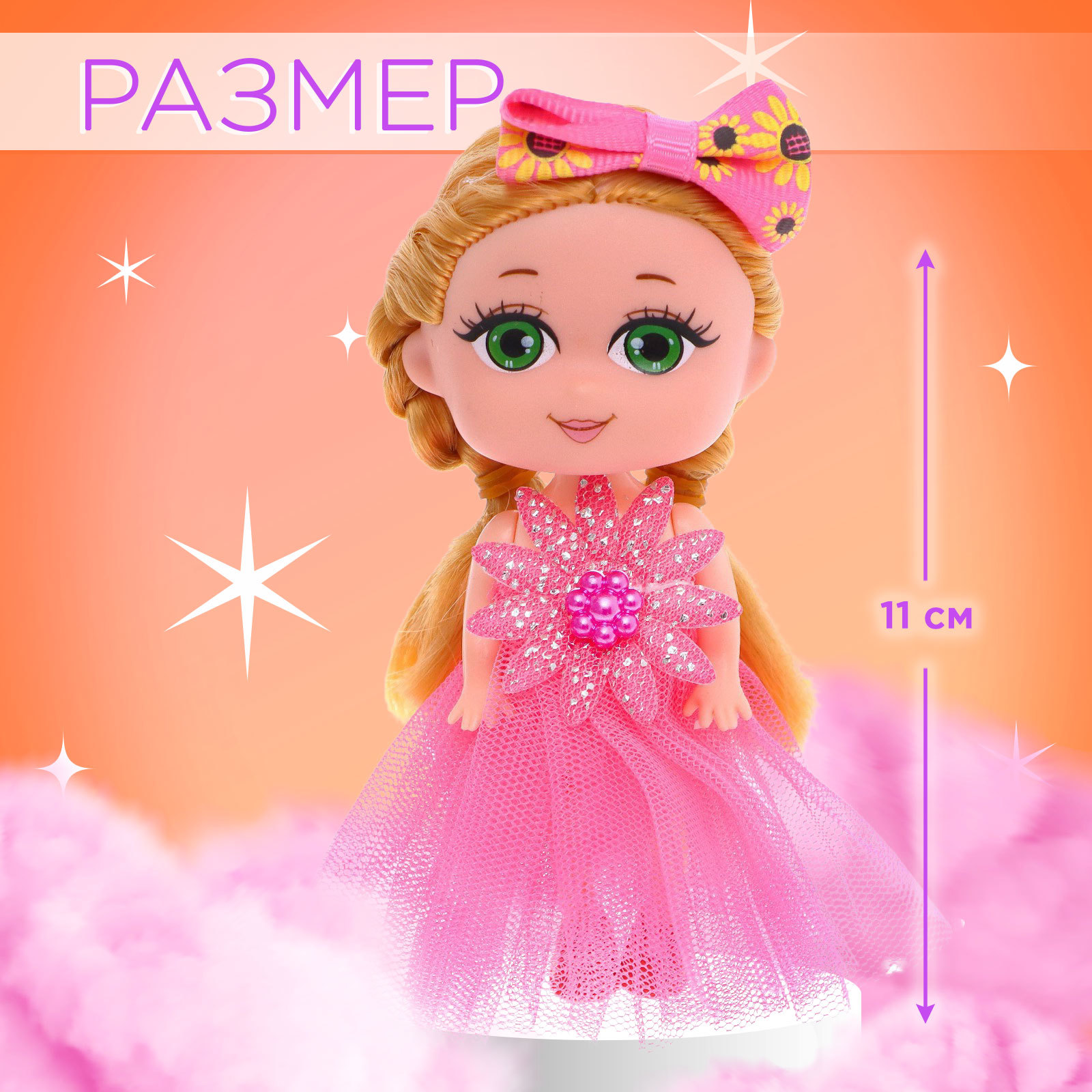 Кукла малышка «самой милой», микс. Милая куколка «Самой милой» станет прекрасным подарком для юной модницы. Ее длинные волосы можно расчесывать и заплетать, придумывая все новые образы. Небольшой размер куклы позволяет брать ее с собой куда угодно: на прогулку, в гости или в путешествие. Компактная упаковка делает куколку удобным подарком. Особенности Куколка обладает очаровательной внешностью, которая понравится любой девочке.Волосы куклы можно расчесывать и укладывать в различные прически.Кукла высотой 11 см легко помещается в детской руке и не займет много места.Собирайте всю коллекцию кукол и создавайте целые истории!Кукла станет отличным подарком на день рождения, Новый год или любой другой праздник. Она будет интересна девочкам, которые любят играть в куклы и создавать свои маленькие миры. Пометка «МИКС» означает, что вы не можете выбрать конкретную модель куколки. Каждый раз это будет сюрприз! Для кого:Для девочки|Высота, см:11|Возраст:От 3 лет|Вид упаковки:Коробка картонная|Вид:Малышка|Материал:Пластик|Особенности куклы:Можно купать|Пол куклы:Девочка|Страна:Китай  развернуть описание ▼