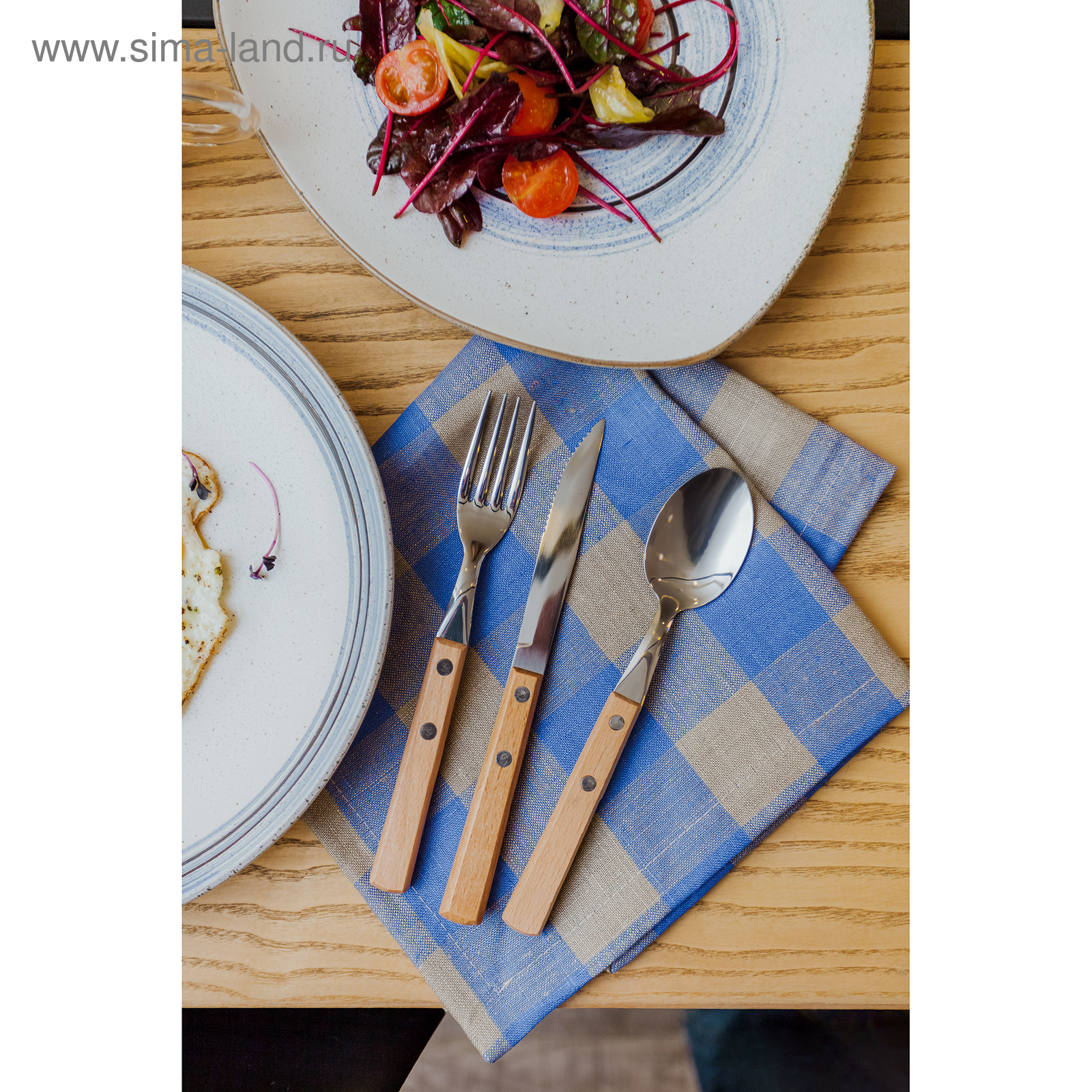 Ложка столовая из нержавеющей стали «эко-стейк», длина 19,5 см, толщина 1,5 мм, деревянная ручка, цвет ручки микс