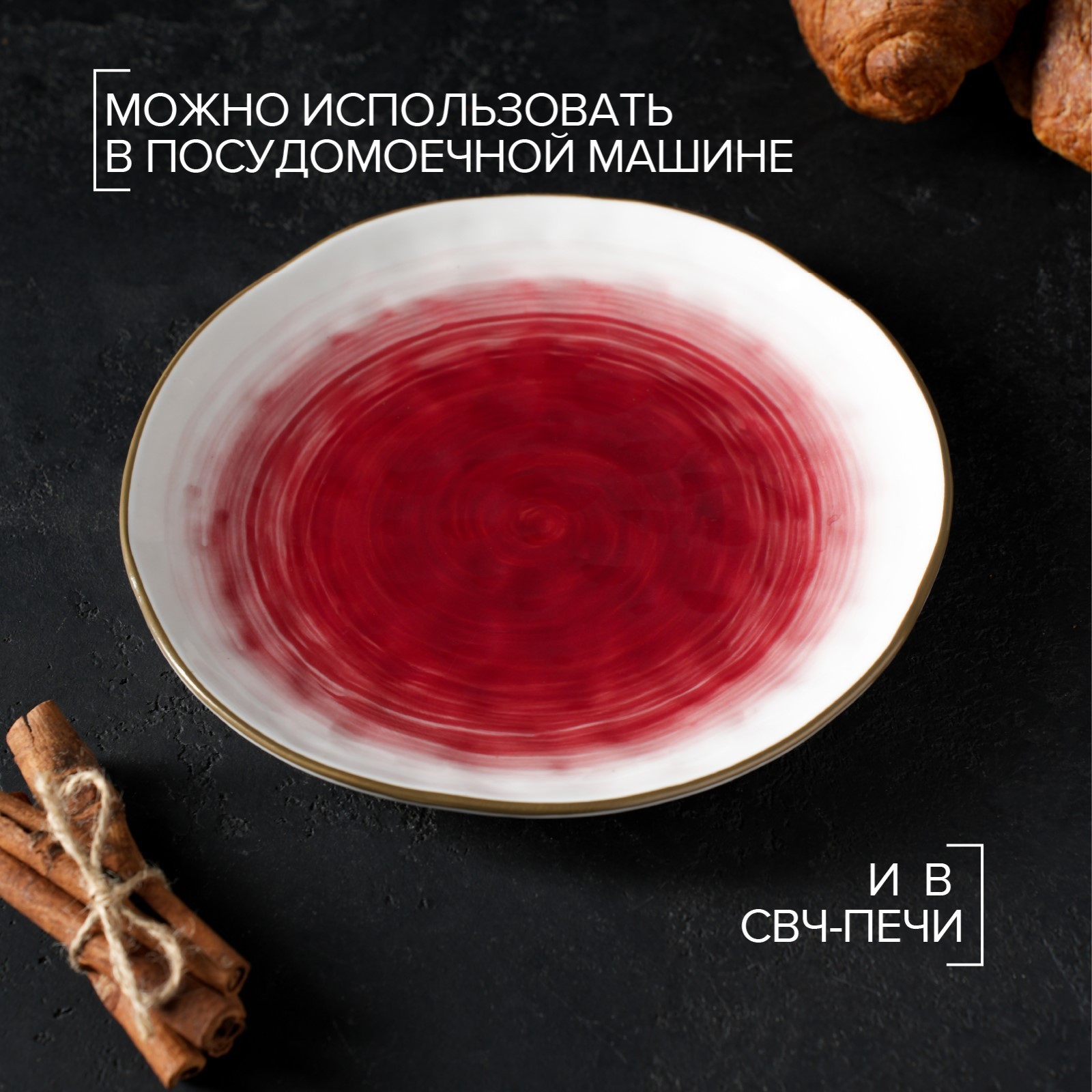 Тарелка фарфоровая доляна «космос», D=21,2 см, цвет красный