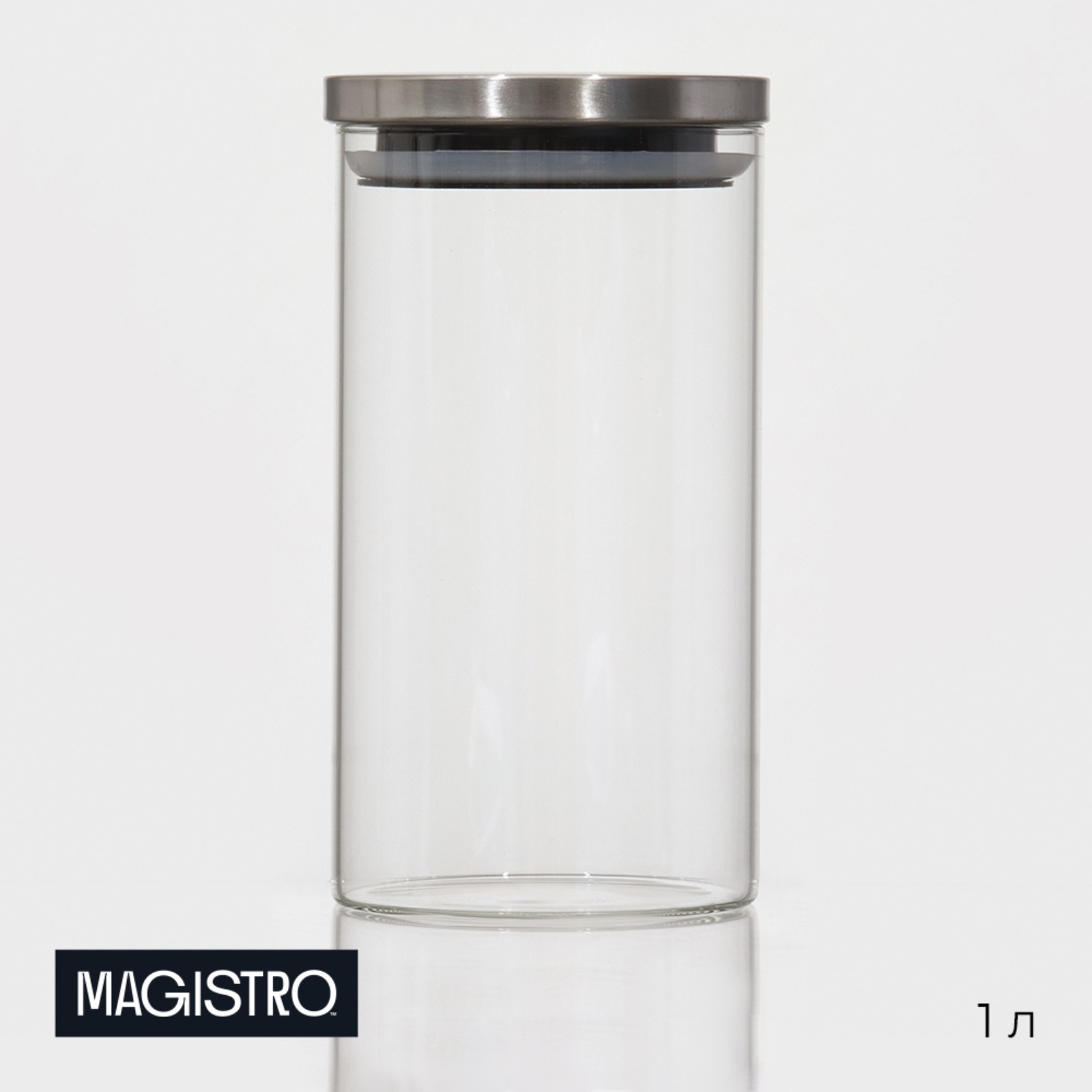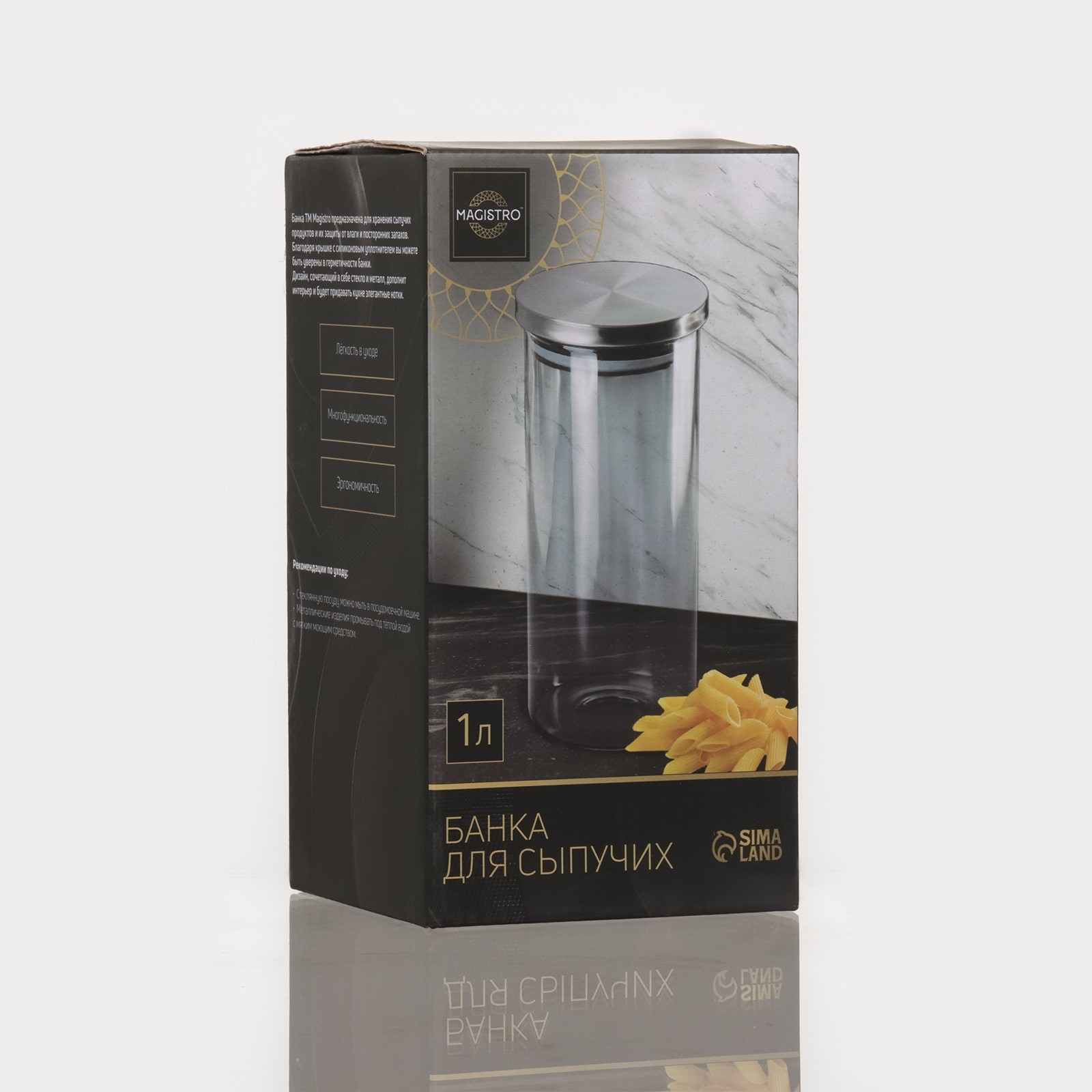 Банка стеклянная для сыпучих продуктов с металлической крышкой Magistro «стиль», 1 л, 10,3x19 см