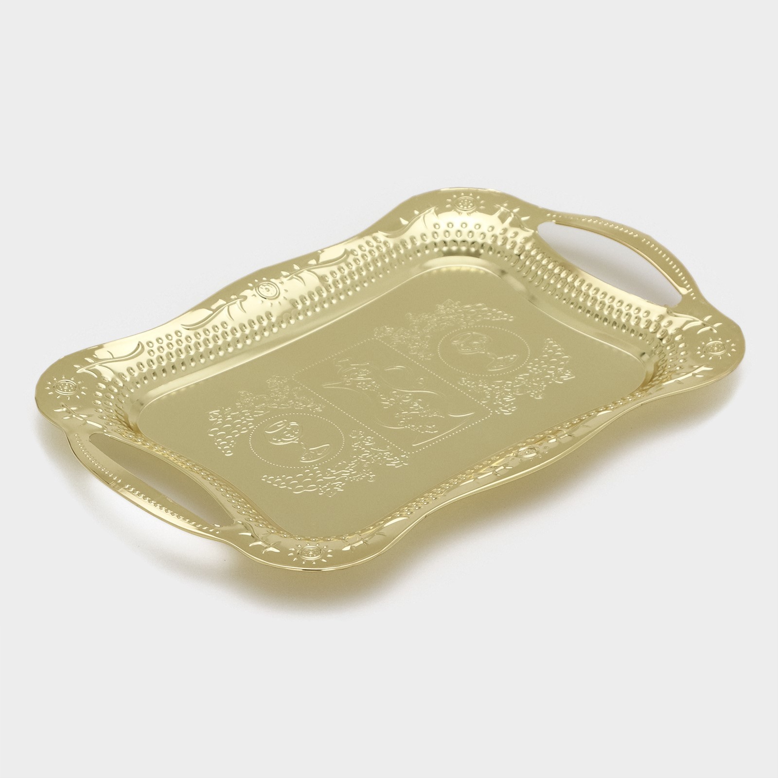 Поднос из нержавеющей стали с ручками «изобилие. золото», 31x20x2 см, цвет золотой