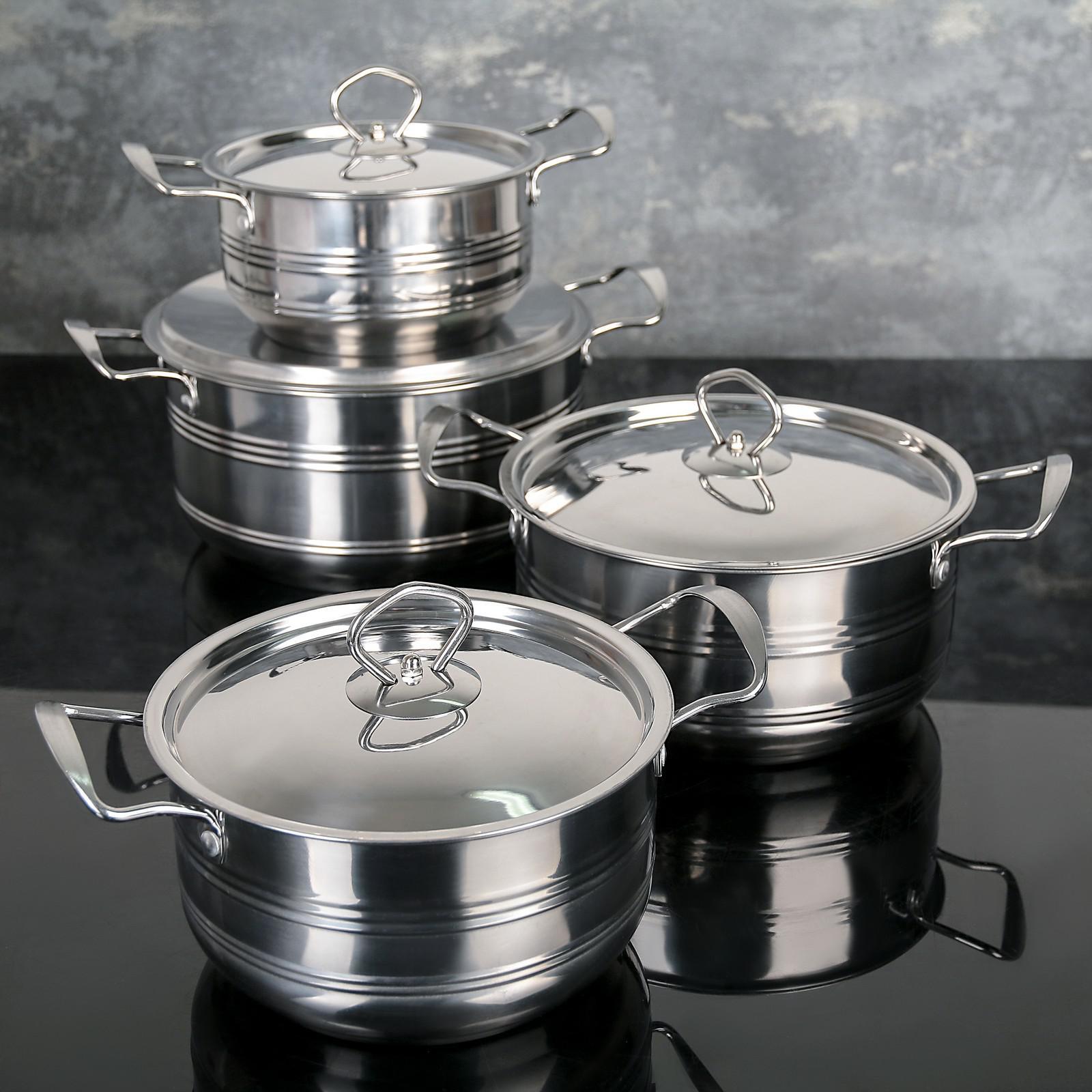 Набор посуды из нержавеющей стали «ясмин», 4 кастрюли: 2 л, 2,7 л, 3,5 л, 4,5 л, D=17/19/21/23 см, металлические крышки, индукци