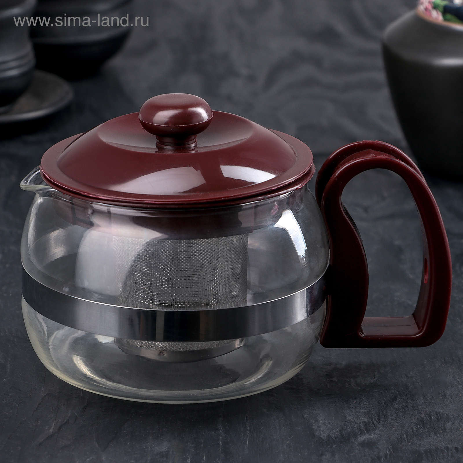 Чайник стеклянный заварочный «бруно», 750 л, 16x11,5x13 см, с металлическим ситом, цвет коричневый