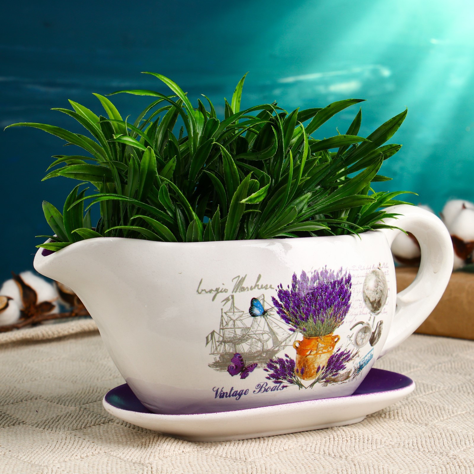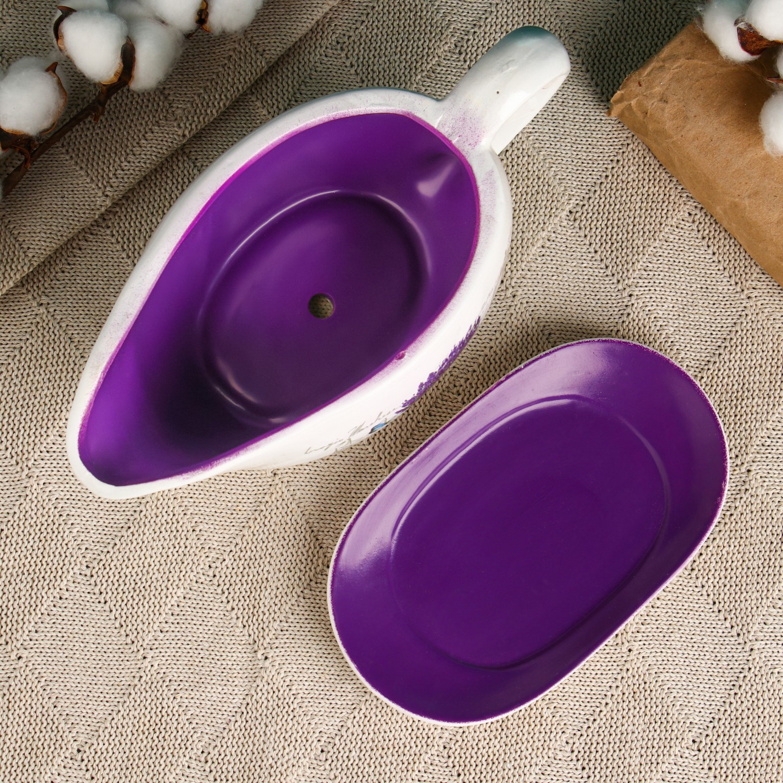 Горшок для цветов в форме кувшина «агнес: лаванда» керамический, с поддоном, 1.1 л, 25 11 11 см, бело-фиолетовый