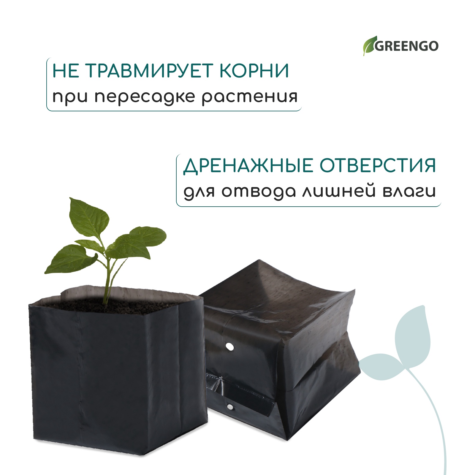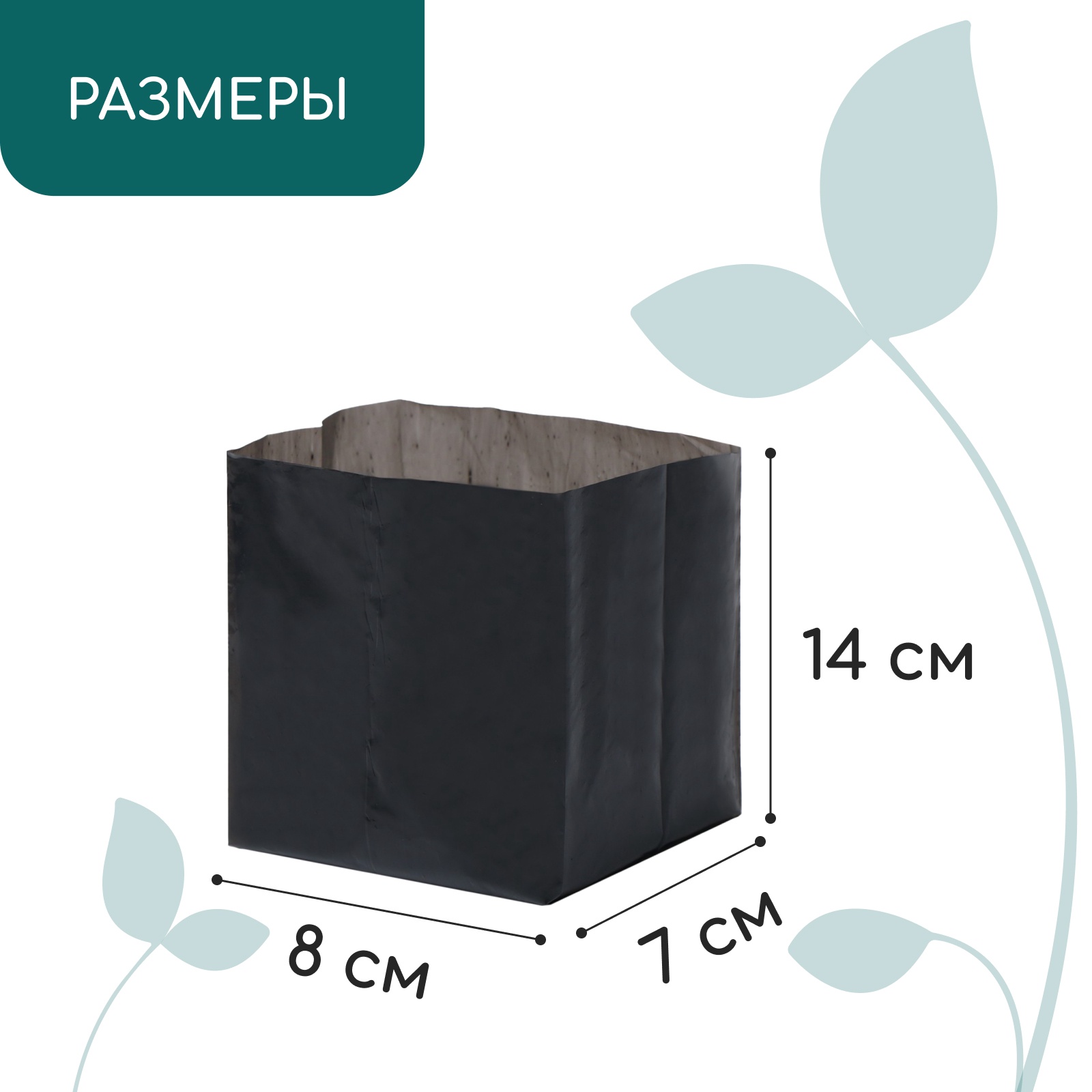 Пакет для рассады, 600 мл, 8 14 см, полиэтилен, толщина 50 мкм, с перфорацией, чёрный, Greengo