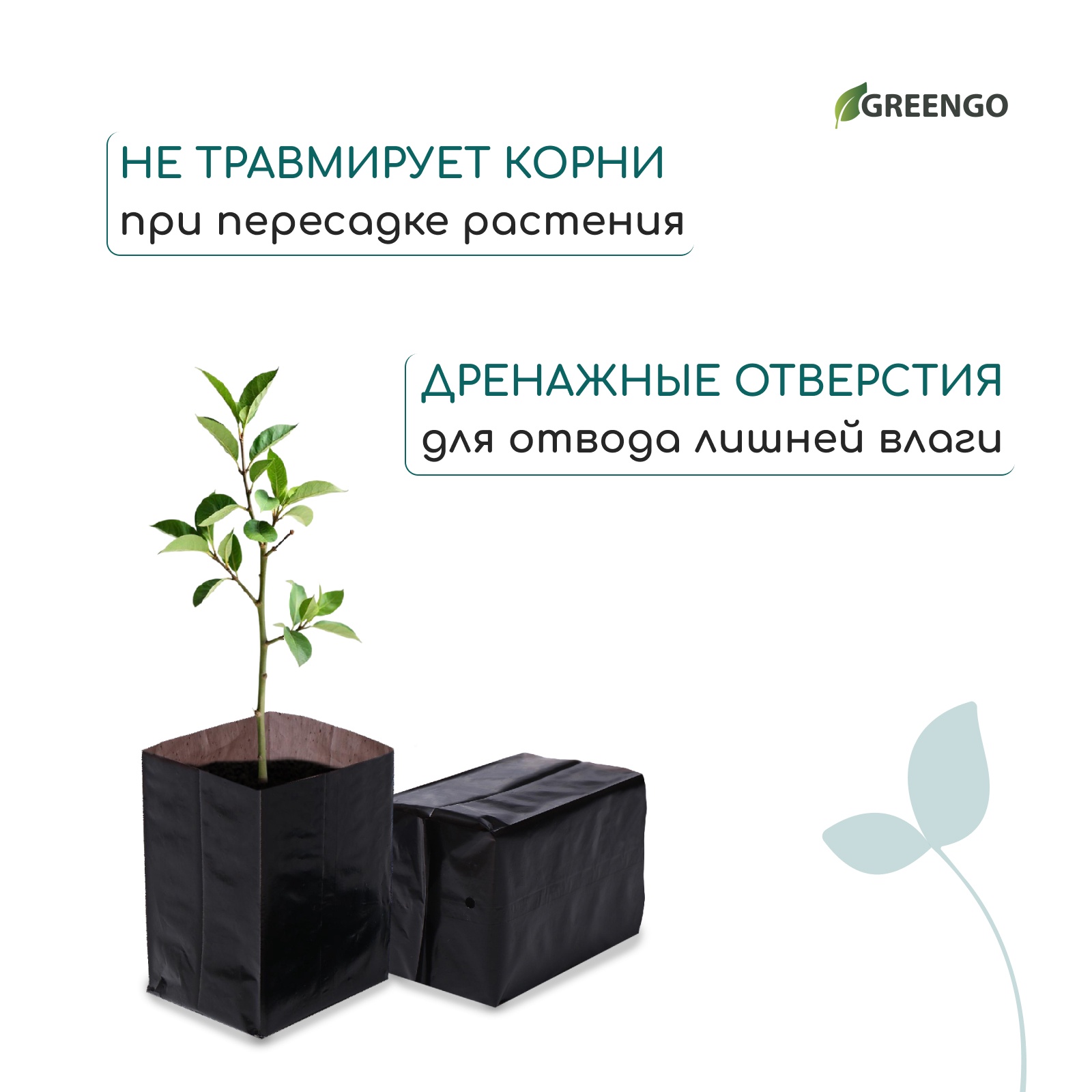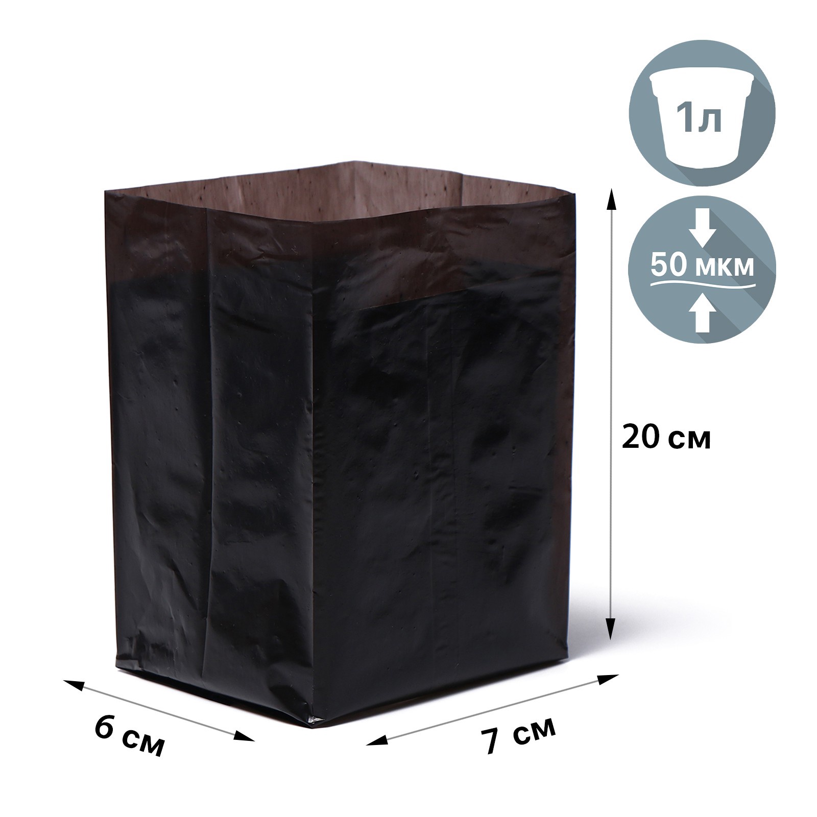 Пакет для рассады, 1 л, 9 18 см, полиэтилен, толщина 50 мкм, с перфорацией, чёрный, Greengo