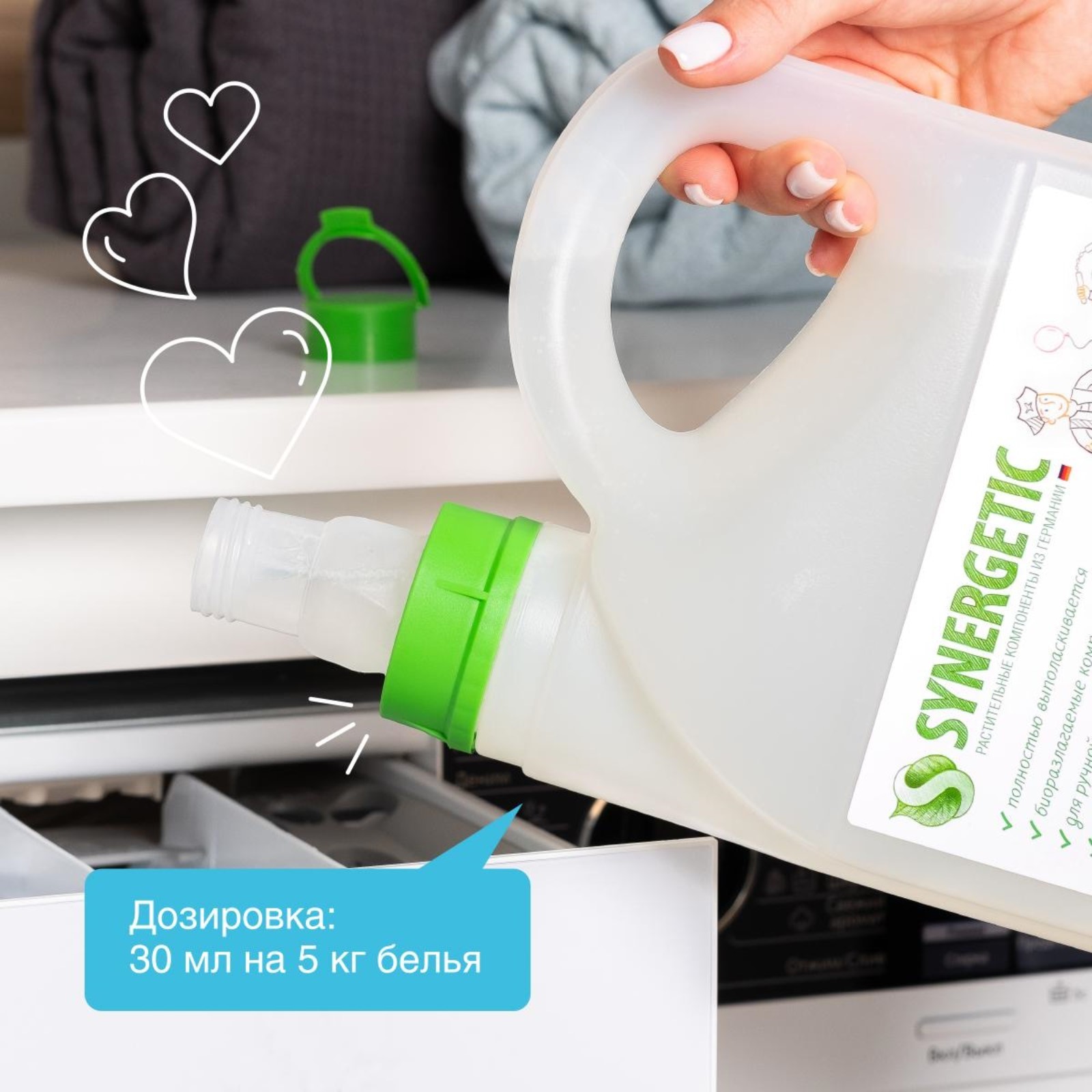 Кондиционер-ополаскиватель для белья synergetic "утренняя роса" биоразлагаемый,гипоаллергенный, 2.75 л. Биоразлагаемый кондиционер-ополаскиватель для белья SYNERGETIC "Утренняя роса"– высокоэффективное средство, бережно ухаживающее за всеми типами ткани, в том числе деликатными, и придающее особую мягкость и нежность белью после стирки. Гипоаллергенный кондиционер-ополаскиватель нейтрализует остатки средств для стирки на ткани, помогает сохранить структуру ткани, защищая волокна от изнашивания и повреждения. Средство обладает антистатическим эффектом. Комплекс растительных К-тензидов обеспечивает легкую глажку белья после стирки и высыхания. Гипоаллергенная парфюмерная композиция с эфирными маслами лимона, бергамота, сантала и мяты придает белью свежий аромат. Подходит для ручной и машинной стирки, полностью выполаскивается из тканей. Международный экологический сертификат ICEA подтверждает биоразлагаемость, безопасность и эффективность средства. Биоразлагаемые компоненты не вредят микрофлоре септических установок. При стирке добавить 30 мл кондиционера на пять килограммов белья. Состав:Подготовленная вода > 30%, К-тензиды (растительного происхождения) 5–15%, парфюмерная композиция «Лаванда» (масла лаванды, лавандина, бергамота, муската, шалфея), пищевой краситель (кармуазин, бриллиантовый синий). Объём, л: 2.75 Назначение: Для всех видов тканей Температурное ограничение: Нет Особенности средства: Экосредство  развернуть описание ▼