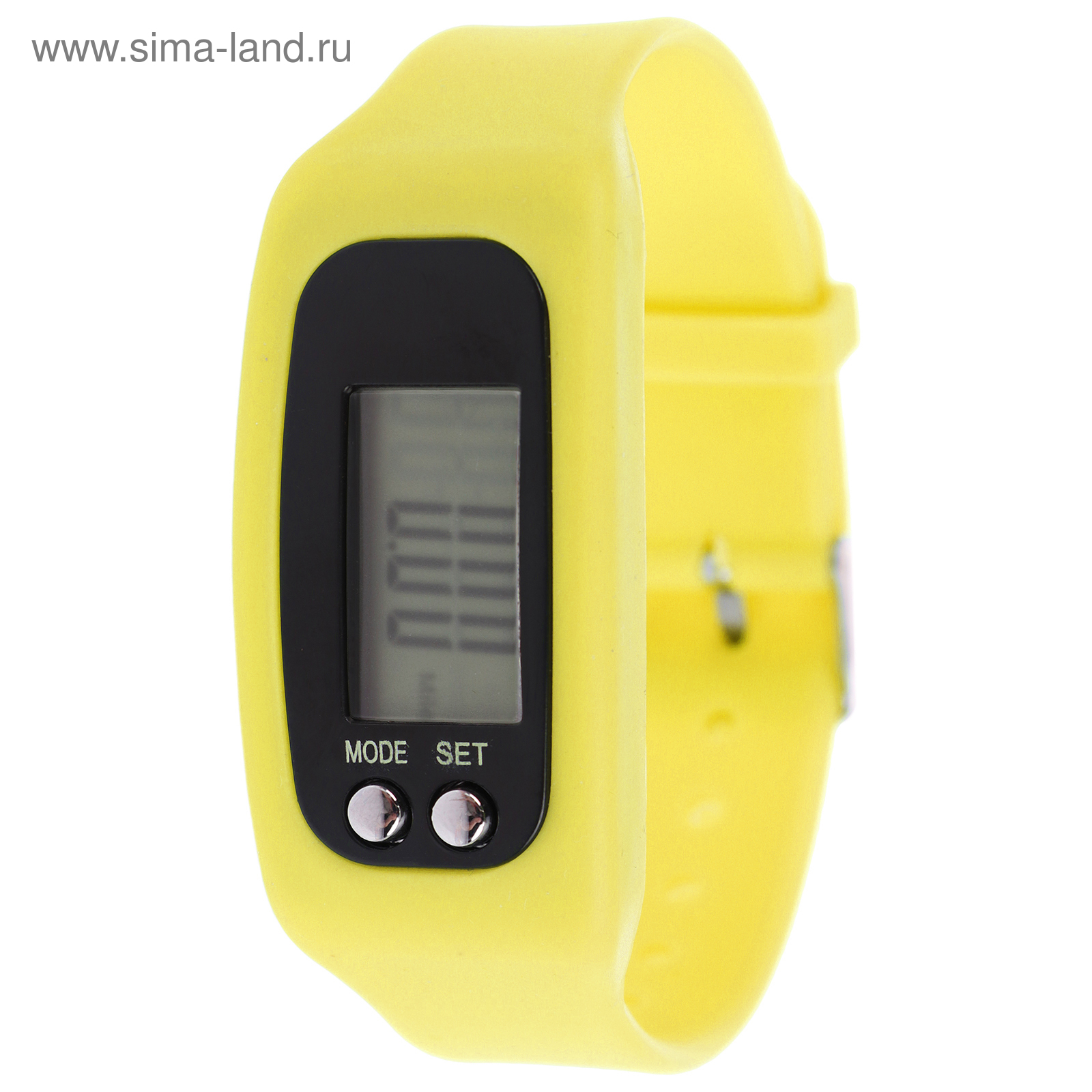 Шагомер-часы, 25 х 1.5 х 4 см, цвета микс. Корпус с LCD дисплеем, двумя кнопками переключения режима и перезагрузки. — Счёт шагов с 0 до 99999. — Трекер калорий и пройденной дистанции, количество пройденных шагов. — Время 24/12. — Питание 1, 5 V. Инструкция: Шагометр по умолчанию использует дюймовую систему мер, чтобы переключить шагометр на метрическую систему, нажмите кнопку «MODE». Настройка времени: нажмите кнопку «SET», пока не появится слово «HOUR», затем с помощью кнопки «MODE» установите правильное время. Такую же операцию проделайте для установки минут. Шагометр: нажмите кнопку «MODE», на дисплее появится «0», начнётся отсчёт шагов. Нажмите кнопку «SET», чтобы сбросить пройденные шаги. Внимание! При смене батарейки настройки вернутся по умолчанию. Цвет: МИКС  развернуть описание ▼