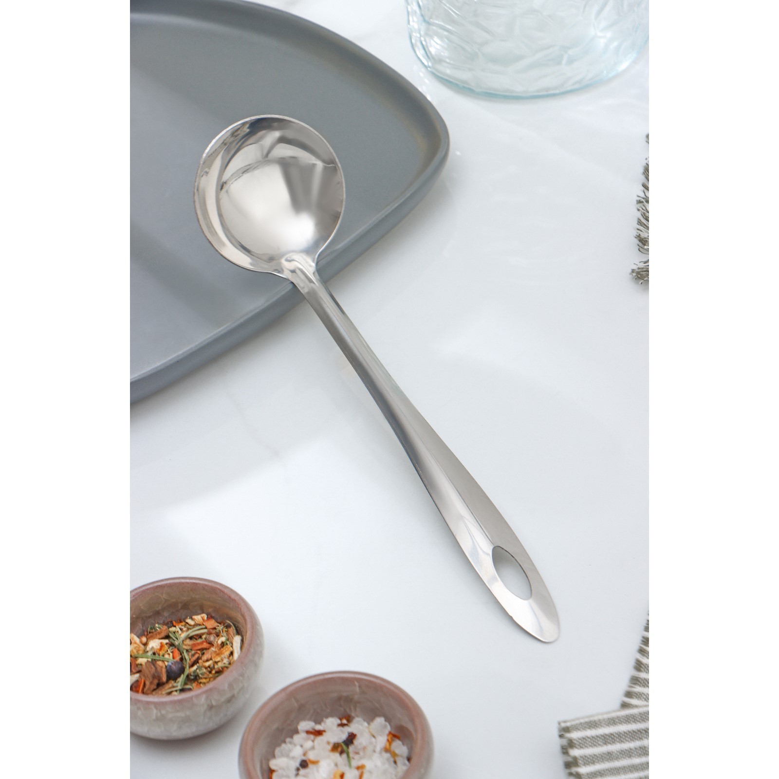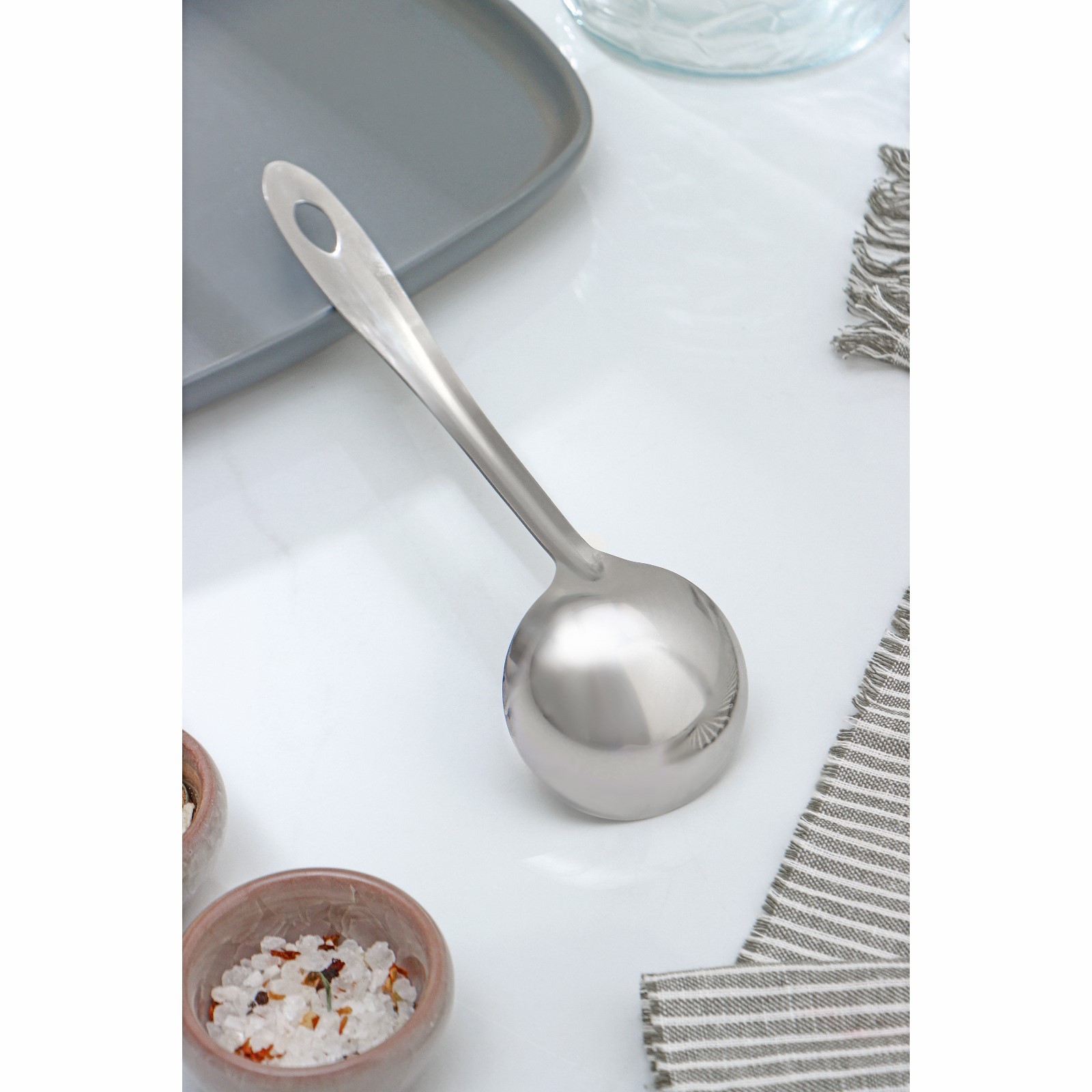 Ложка для соуса из нержавеющей стали доляна «хозяюшка», 30 мл, h=25 см, цвет серебряный. Кухонная ложка для соуса Доляна станет незаменимым помощником как во время повседневной готовки, так и при создании кулинарных шедевров для торжественных событий. Изделие подойдёт для помешивания и снятия пробы с готовящихся блюд, а также для наливания соуса в блюдо. Цвет: Серебристый Объём, мл: 25 Материал ручки: Нержавеющая сталь Материал: Нержавеющая сталь Можно мыть в посудомоечной машине: Да  развернуть описание ▼