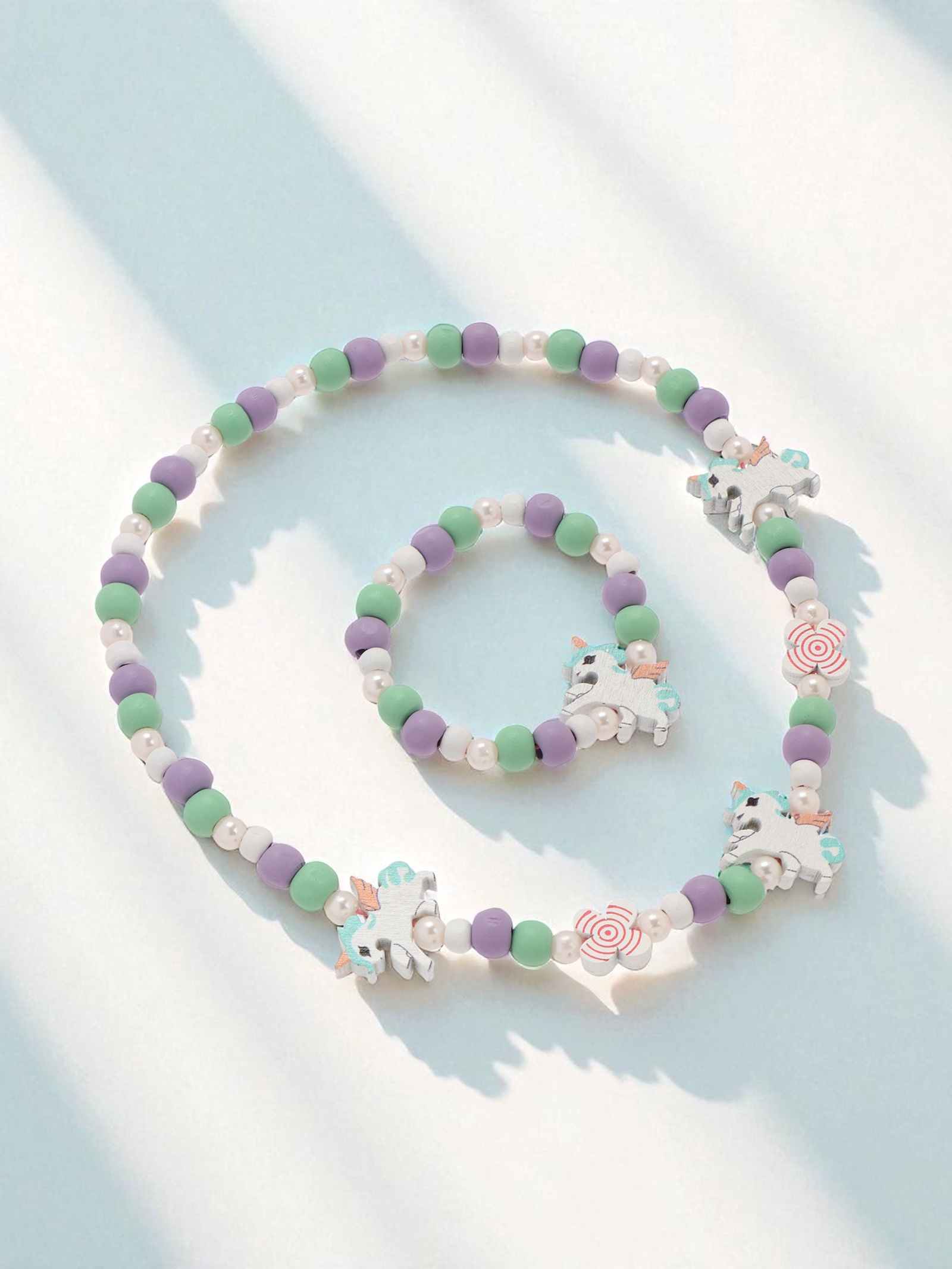 Набор детских украшений выбражулька «единорог», 2 предмета: бусы, браслет, разноцветный