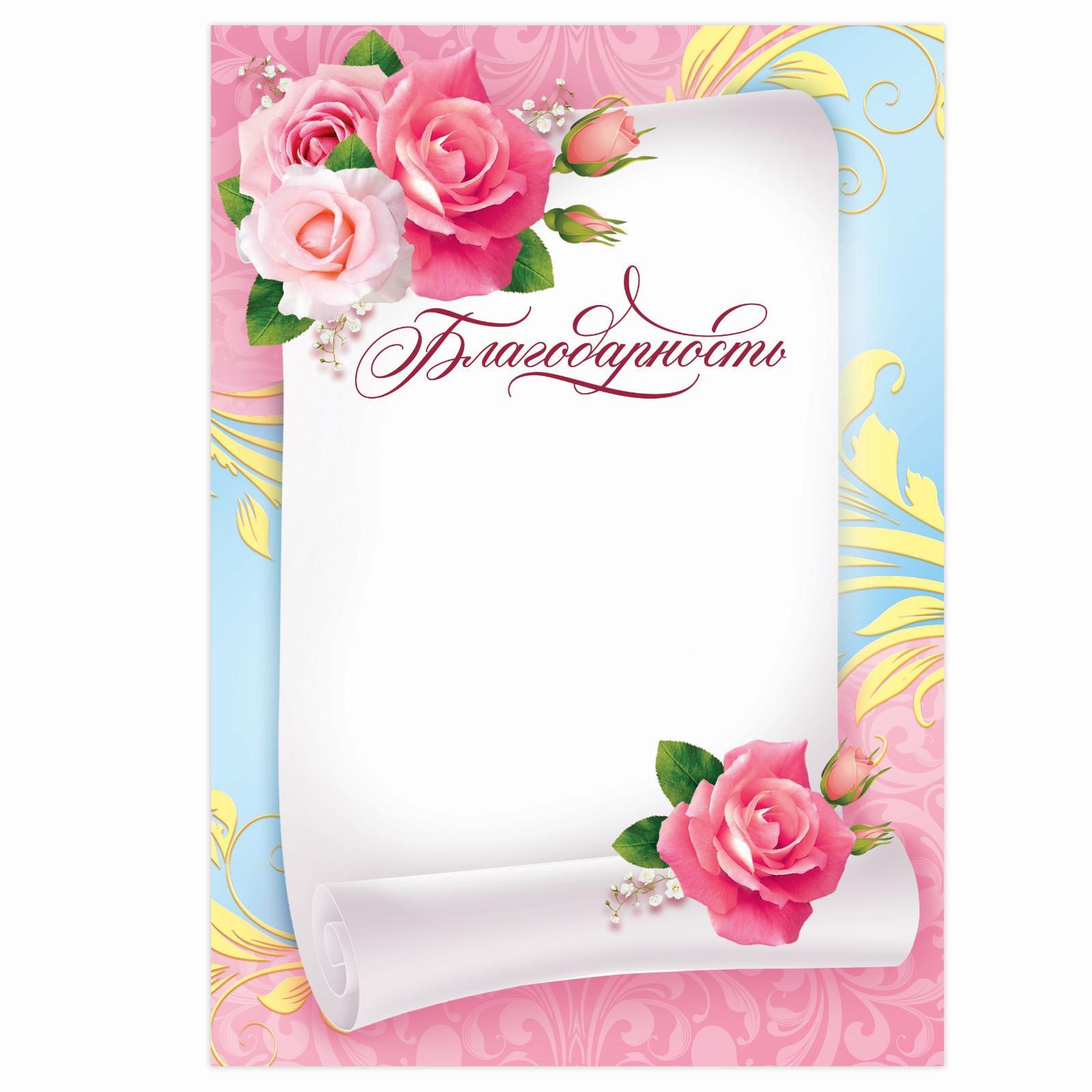 Благодарность а5 с цветами, 157 гр/кв.м