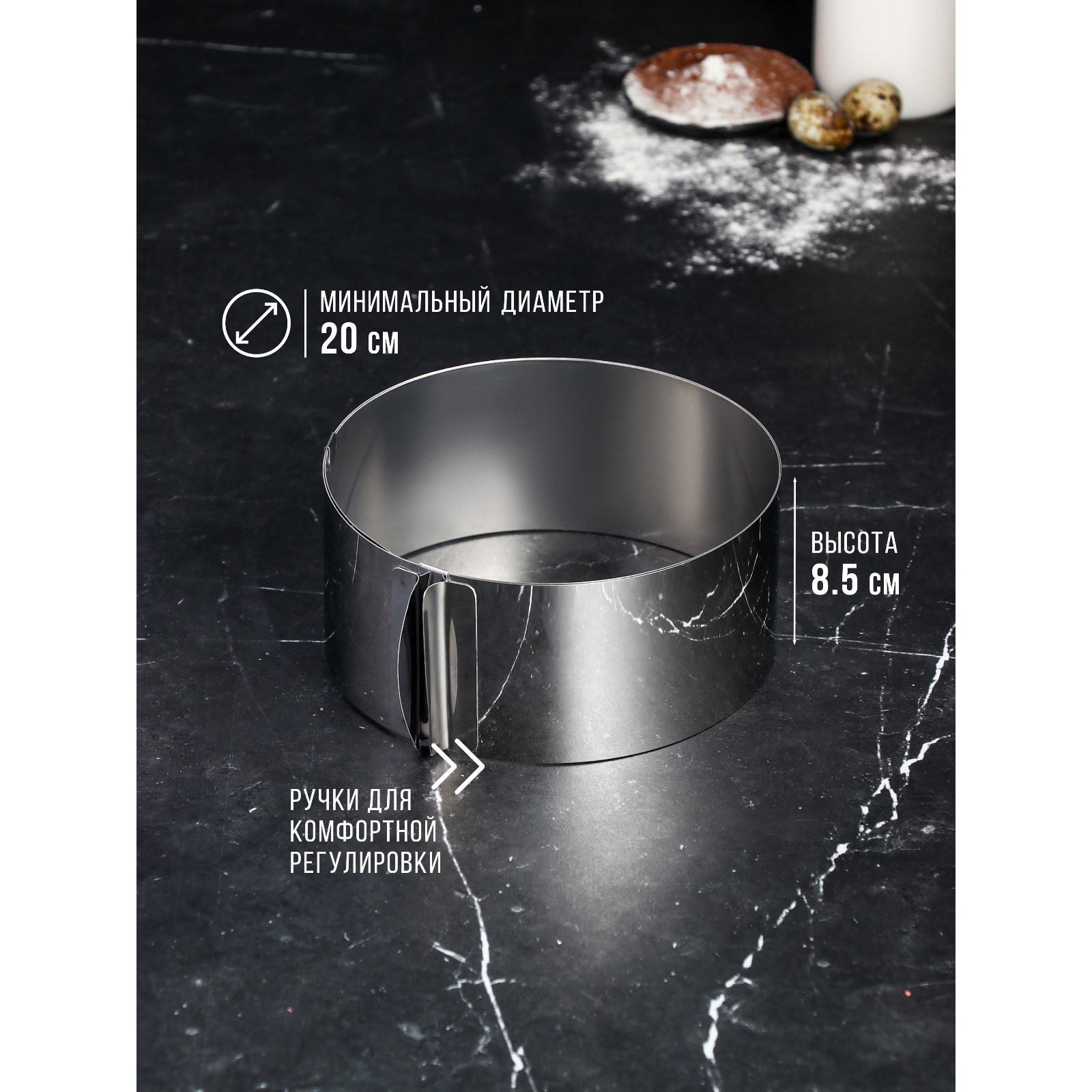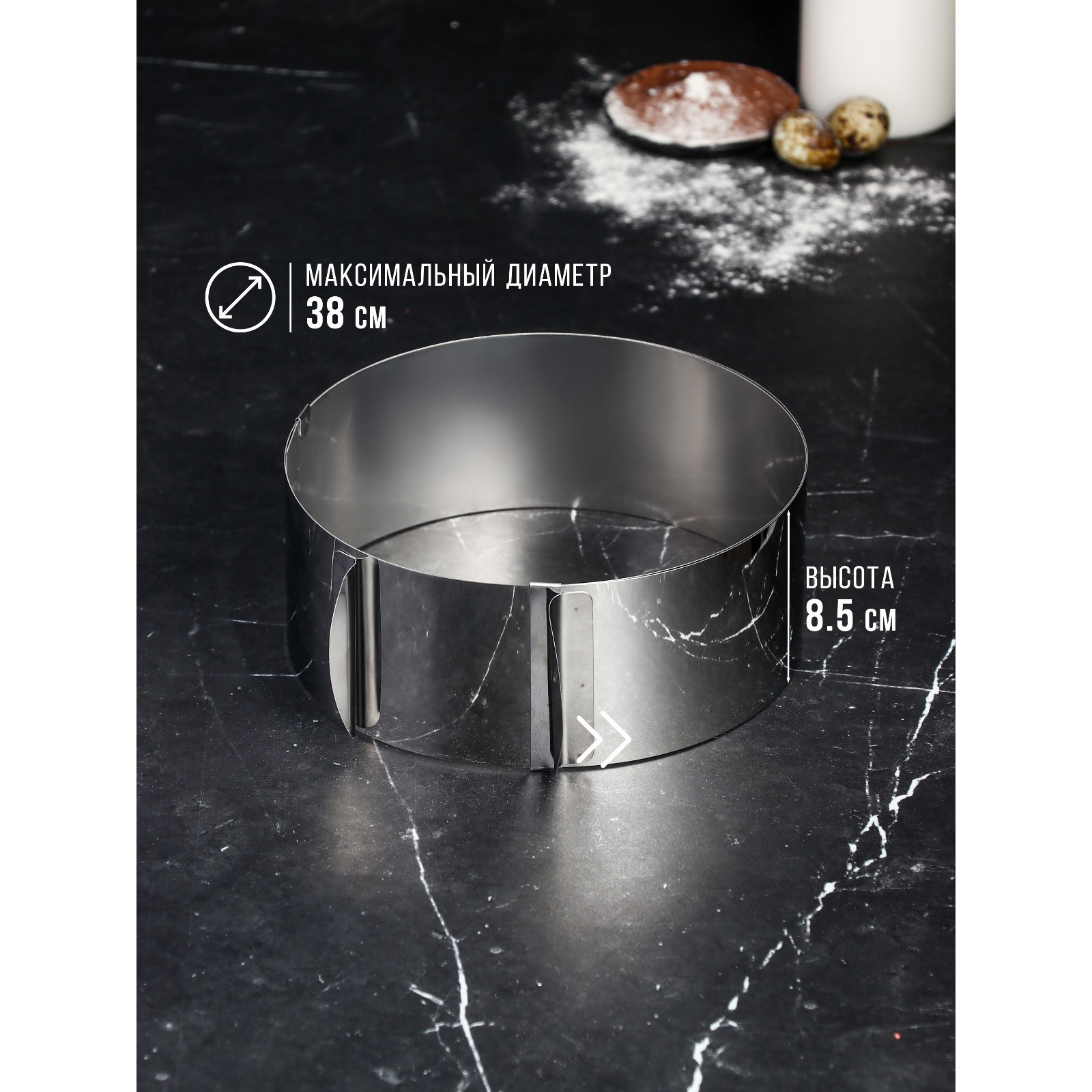 Форма для выпечки и выкладки с регулировкой размера «круг», H-8,5 см, D-20-38 см