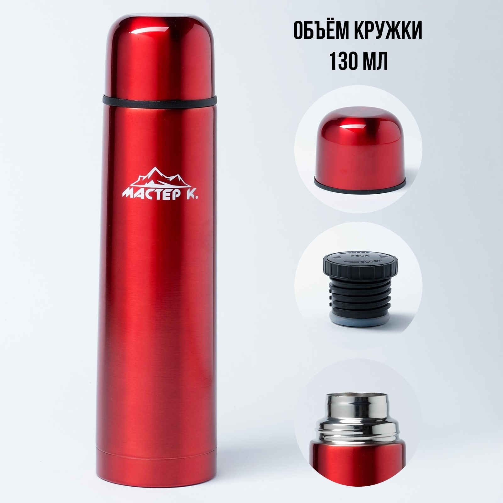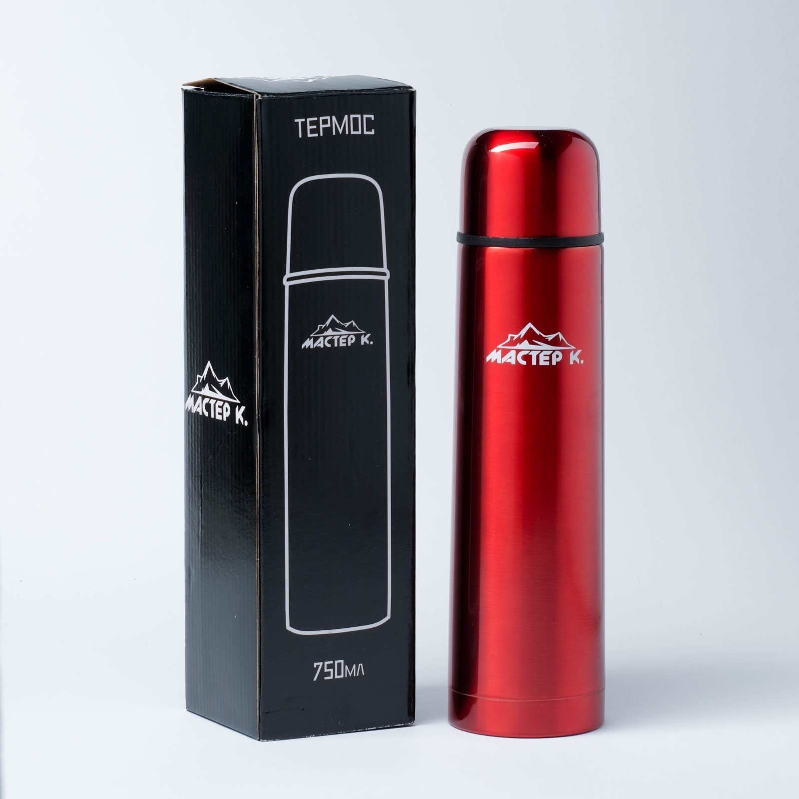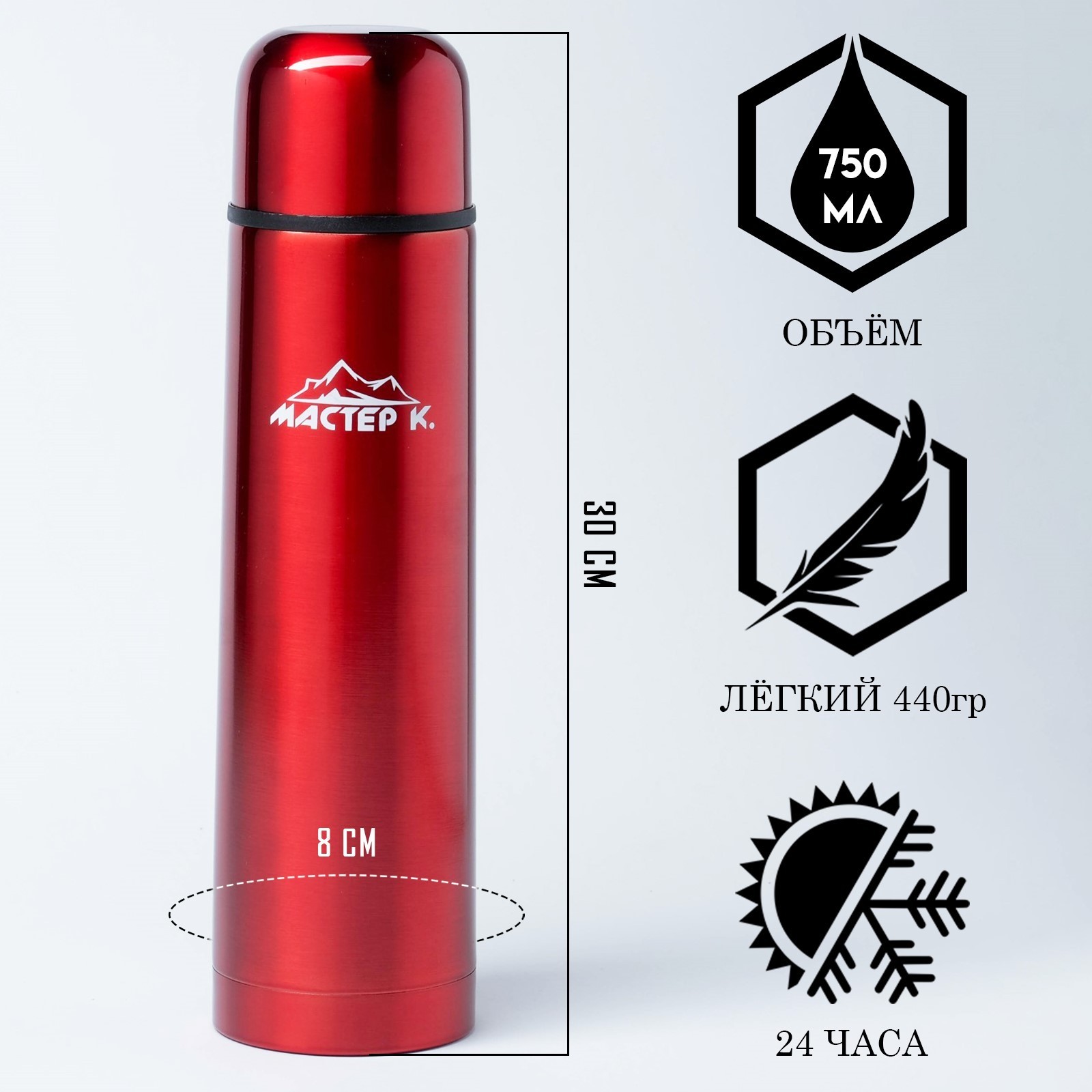 Термос, 750 мл, гильза "мастер к", с кружкой, сохраняет тепло 24 ч, гарантия 5 лет, красный