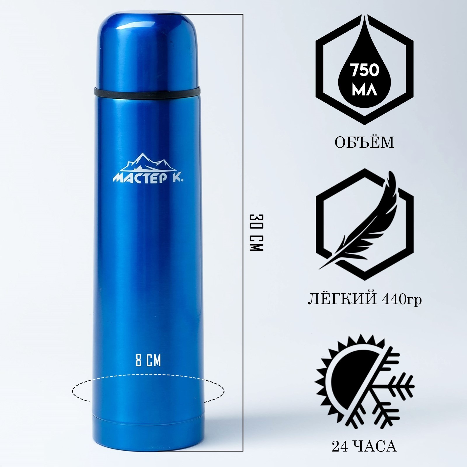 Термос, 750 мл, гильза "мастер к", с кружкой, сохраняет тепло 24 ч, 30 х 8 см