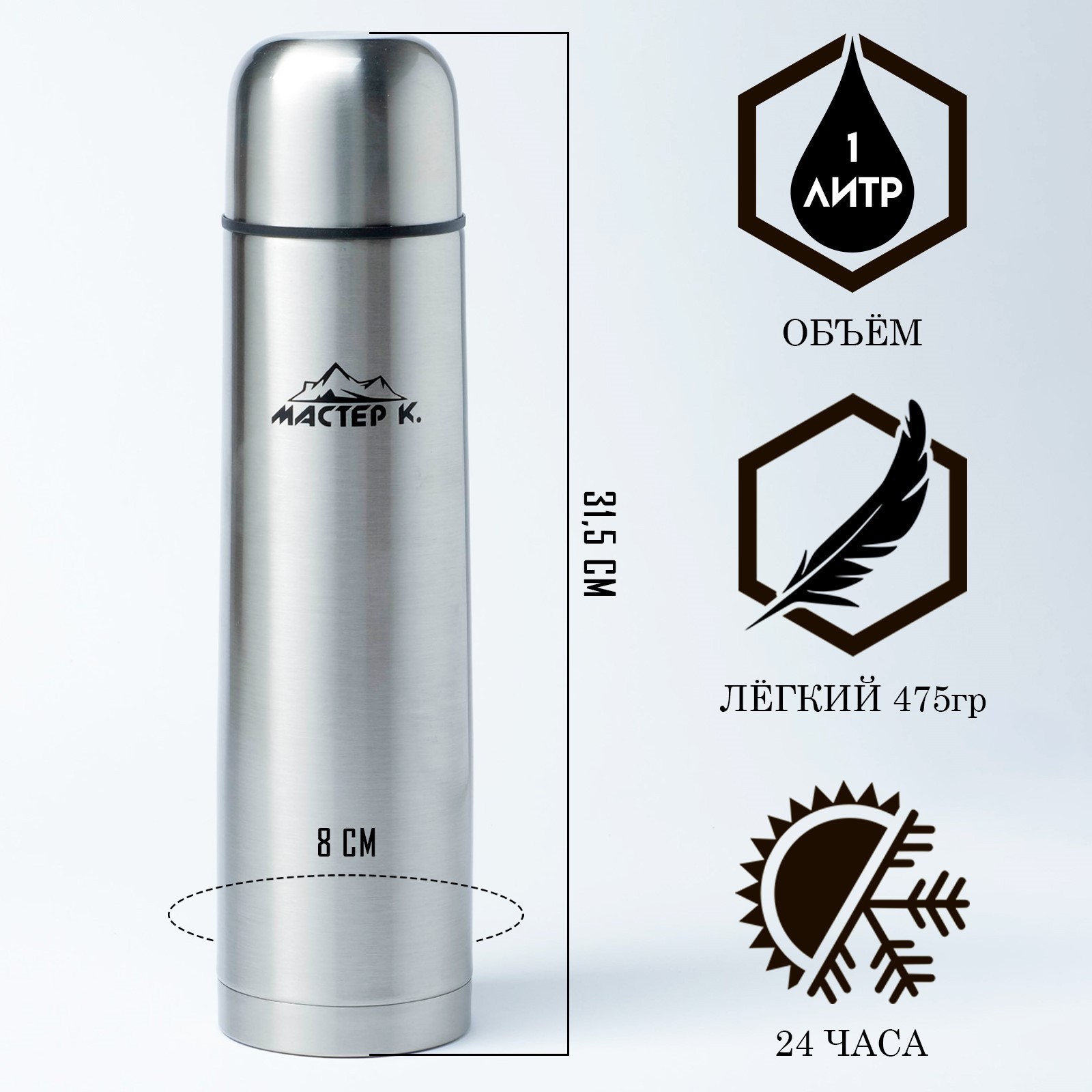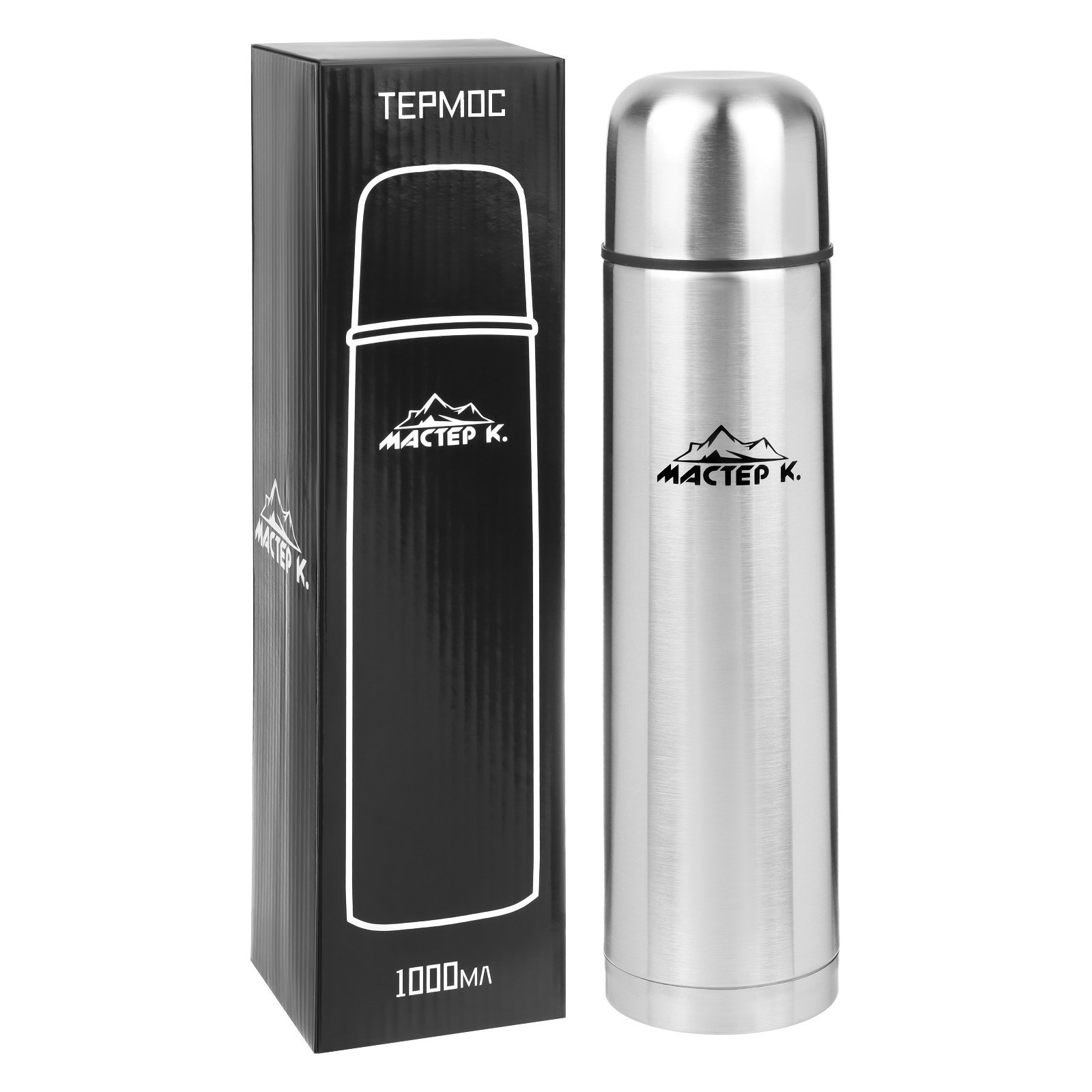 Термос, 1 л, гильза "мастер к", с кружкой, сохраняет тепло 24 ч, гарантия 5 лет, хром