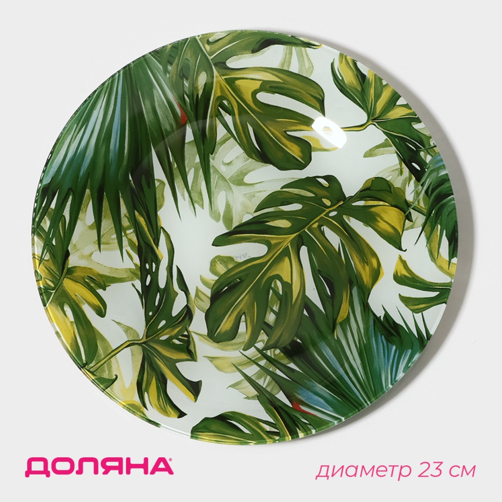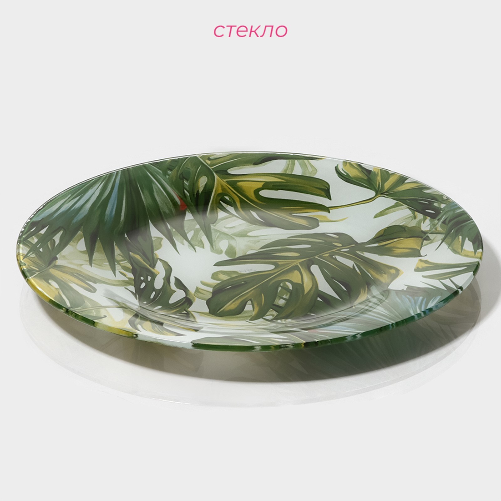 Тарелка стеклянная обеденная доляна «монстера», D=23 см Тарелка стеклянная обеденная доляна «монстера», D=23 см Тарелка стеклянная обеденная доляна «монстера», D=23 см
