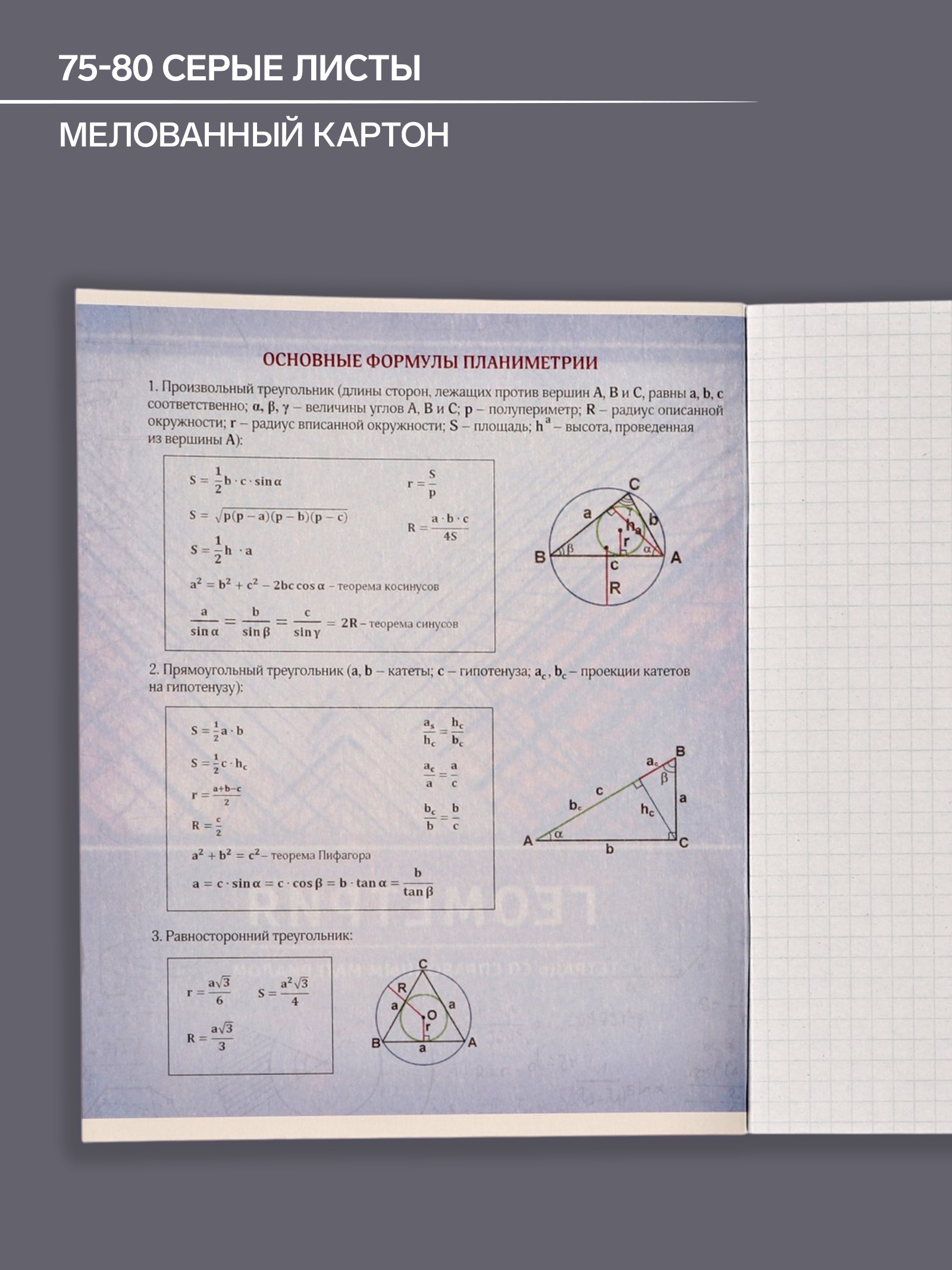 Тетрадь предметная, 48 листов в клетку, Calligrata, «металл. геометрия», серые листы