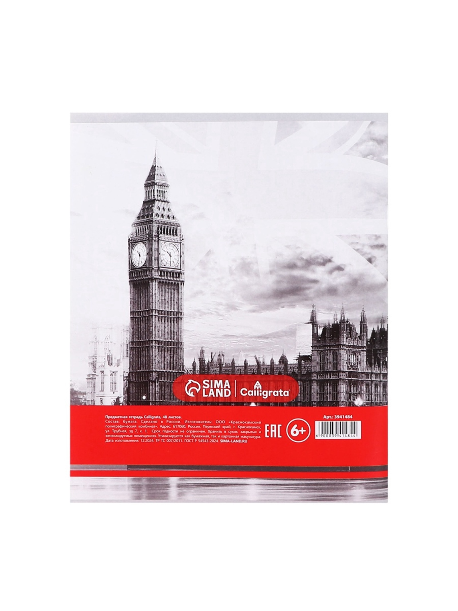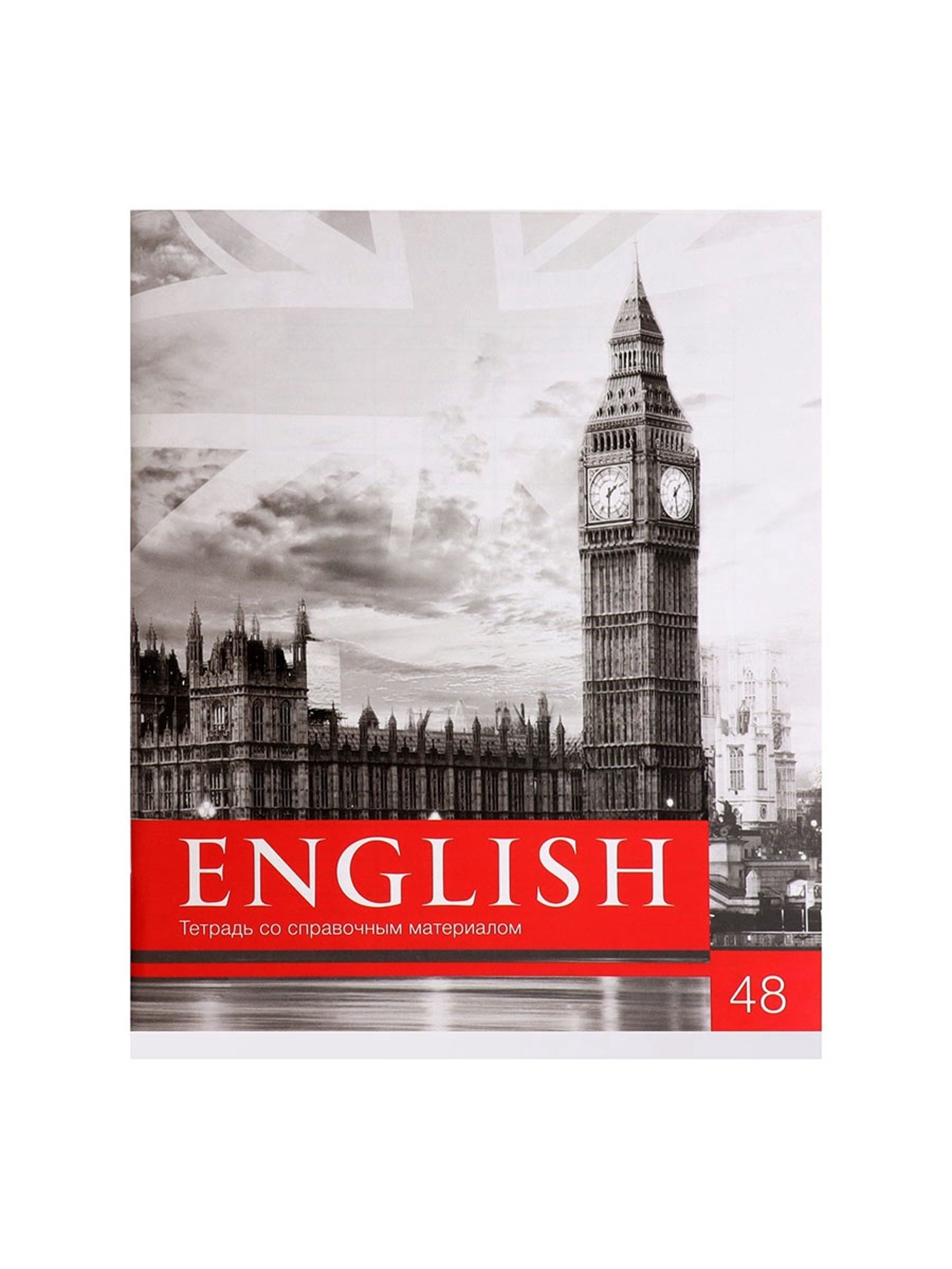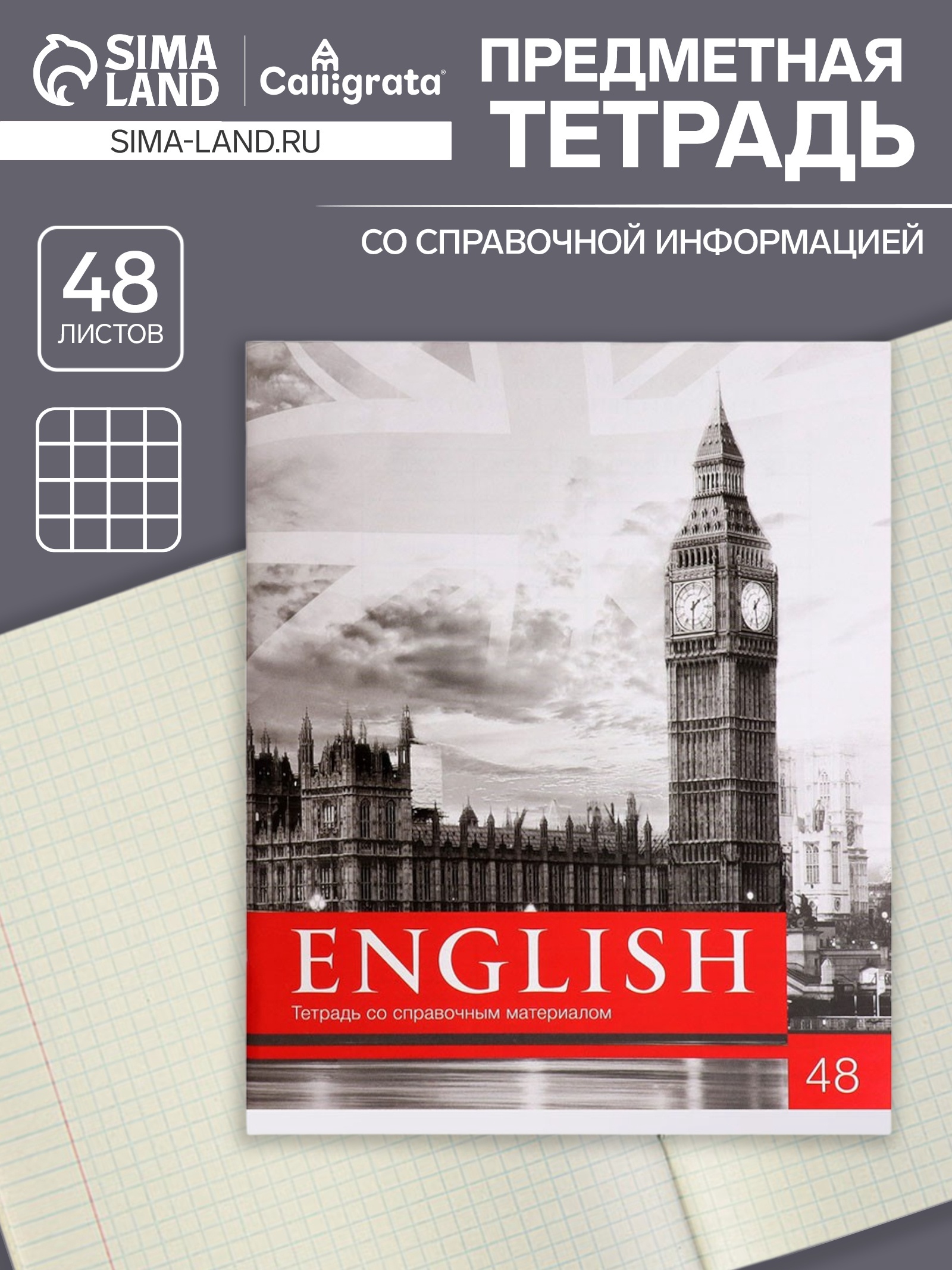 Тетрадь предметная, 48 листов в клетку, Calligrata, «чёрное-белое. английский язык», серые листы