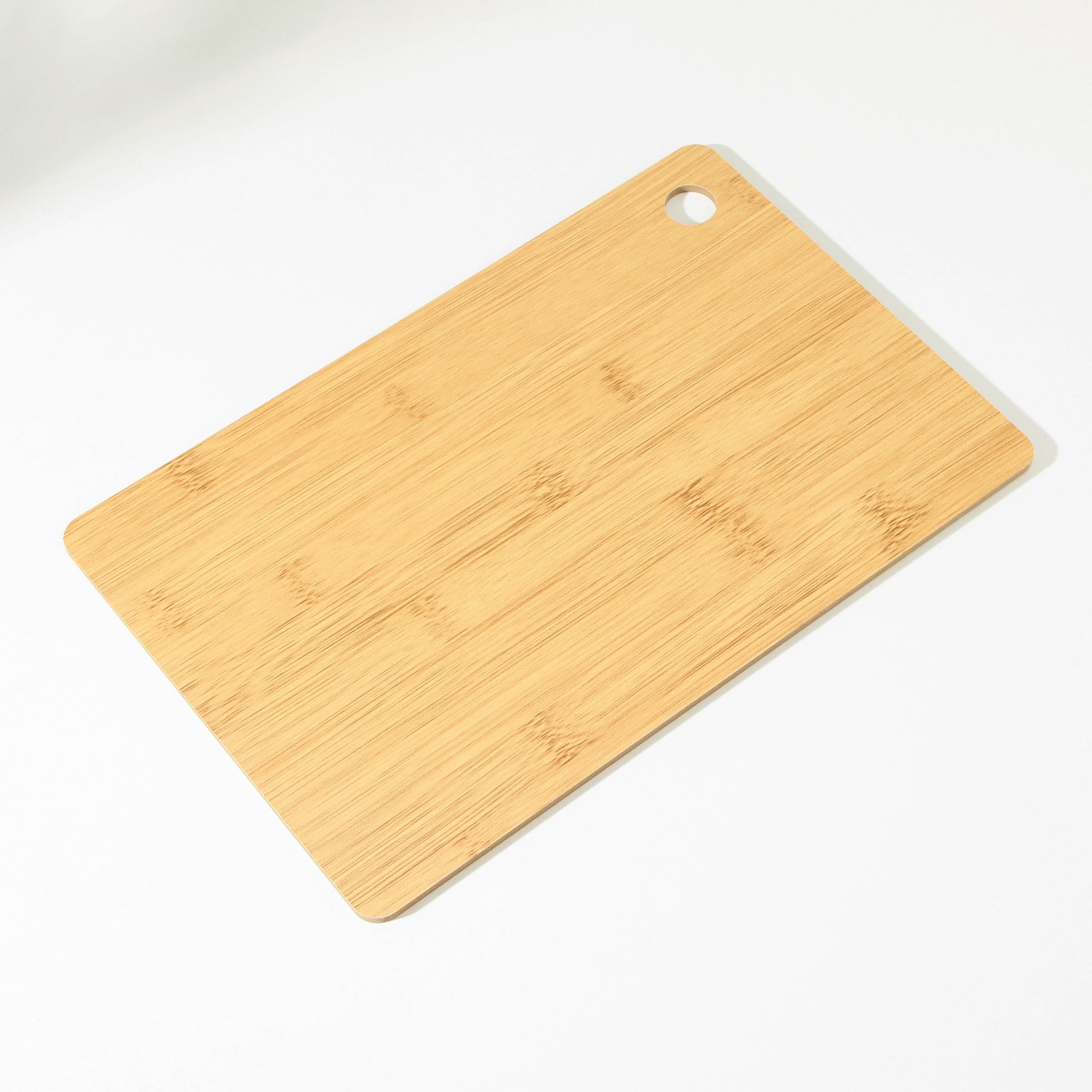 Доска разделочная доляна «фидан», 30x19,5 см. Преимущества деревянных разделочных досок Обладают необходимой упругостью при нарезании крошащихся, мокрых, твёрдых и тягучих продуктов. Натуральная древесина гипоаллергенна и гигиенична. Как ухаживать за деревянной разделочной доской Изделие нужно обязательно мыть вручную в тёплой воде сразу после использования. Замачивание доски в раковине повредит её: от воды древесина может испортиться. После мытья необходимо протереть изделие мягкой тряпочкой. Сушите доску, уложив её на плоскую поверхность так, чтобы она не деформировалась. Если постоянно ставить её набок, то постепенно она будет выгибаться в определённую сторону. Периодически протирайте изделие р Цвет: Коричневый Форма: Прямоугольная Длина, см: 30 Ширина, см: 19.5 Материал: Бамбуковое волокно Тип доски: Стандартная Можно мыть в посудомоечной машине: Нет Особенности: Подвесная  развернуть описание ▼