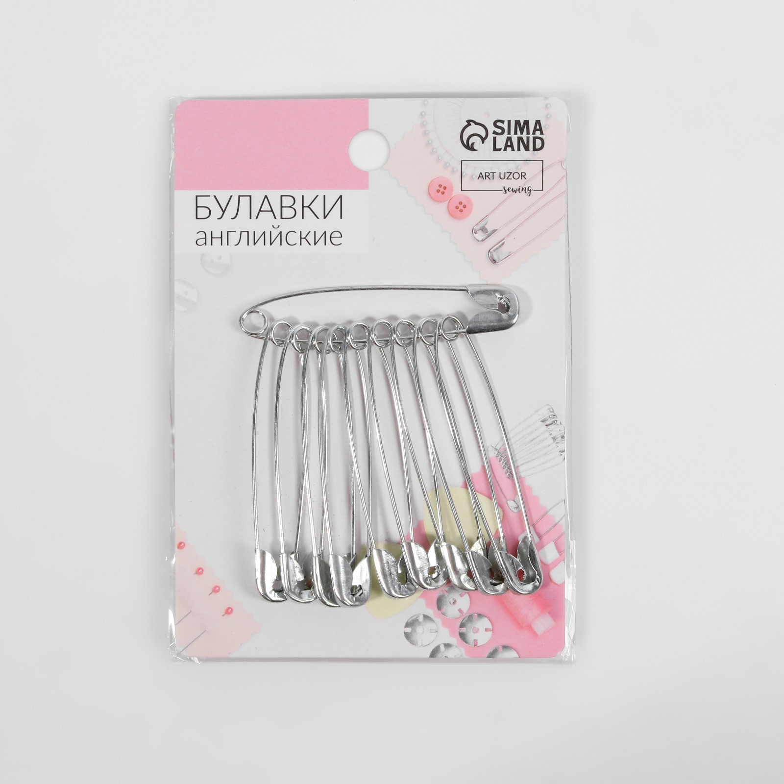 Булавки английские, 51 мм, 10 шт., цвет серебряный. Английская булавка — универсальный помощник в быту, при шитье и рукоделии. Она пригодится для закалывания материала, драпировки ткани, создания украшений. С ней вы можете прикрепить к одежде или домашнему текстилю мягкие аксессуары. Острый край булавки прячется в безопасную петельку, она не уколет и прослужит вам долго. Набор:Да|Цвет:Серебристый|Длина, см:5.1|В наборе, шт.:10|Изогнутая форма:Нет|Вид булавки:Английские|Страна:Китай  развернуть описание ▼
