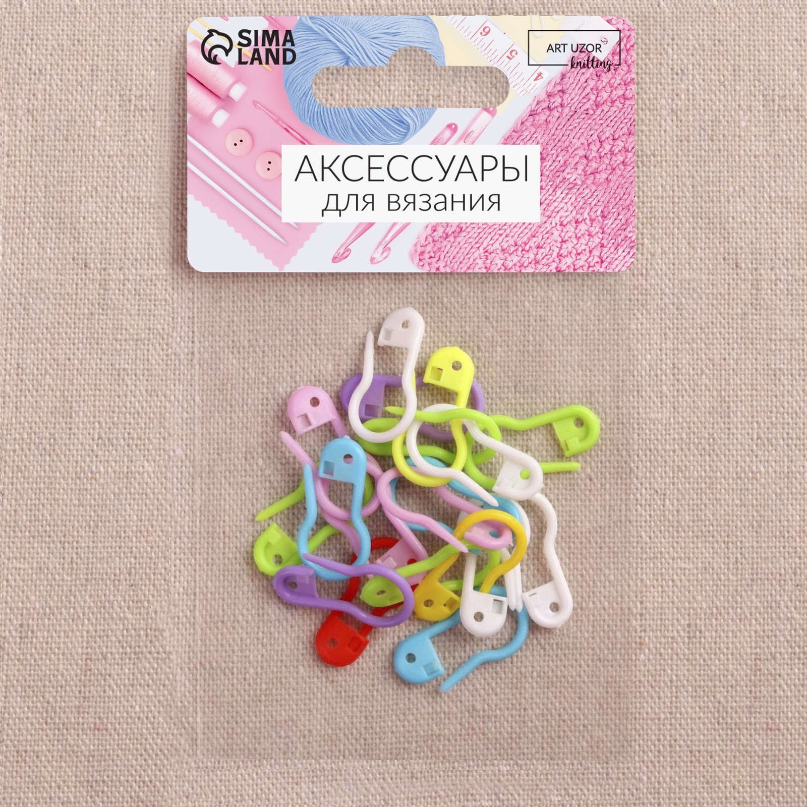 Длинный хвостик легко вдевается в петлю или столбик, затем фиксируется в замке, не деформирует и не растягивает вязку. Разными цветами удобно помечать участки в одном изделии: выделить спинку, пройму, полочку. Если допущена ошибка, можно за пару секунд снять и переставить булавку на другое место.