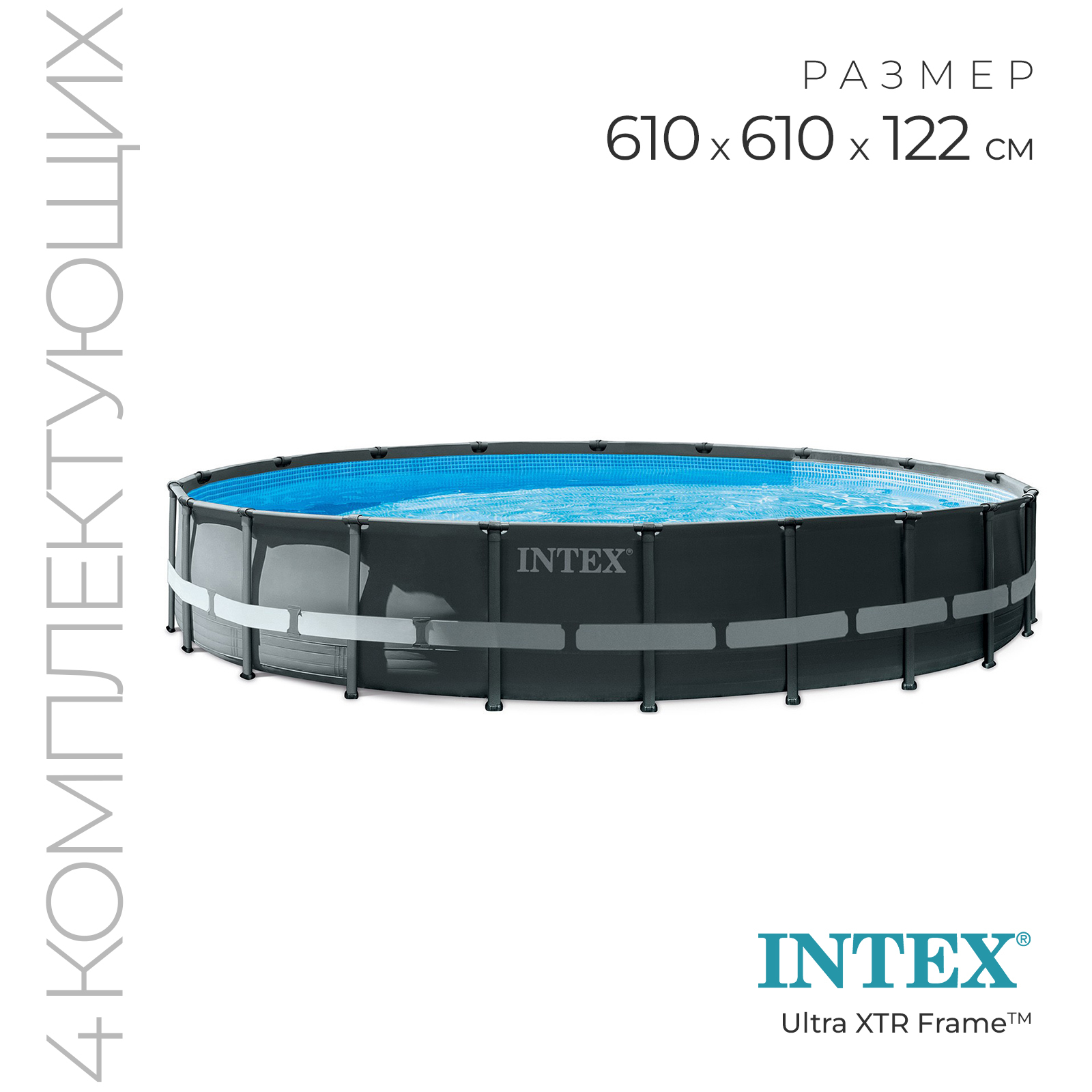 Бассейн каркасный ultra xtr frame, 610 х 122 см, песчаный фильтр-насос, лестница, тент, подстилка, 26334np intex. Каркасный бассейн — это отличный выбор для всей семьи. Каркас бассейна сделан из прочного металла, что позволяет выдерживать большие нагрузки. Материал бассейна выдерживает суровые погодные условия, устойчив к прямым попаданиям солнечных лучей и воздействию хлора, выдерживает давление больших объёмов воды. Встроенный сливной клапан облегчает слив воды, путём присоединения садового шланга с входящим в комплект адаптером. Таким образом, воду можно слить в любое удобное место или, например, полить сад. В комплекте с бассейном прилагается песчаный фильтр-насос. Форма: Круглая Диаметр, см: 610 Длина, см: 610 Ширина, см: 610 Высота, см: 122 Наличие насоса: Да Тип фильтра для насоса: Песочный фильтр Количество слоёв: 3 Производительность, л/ч: 7900 Объём, л: 30079 Тент: Да Подстилка: Да Лестница: Да : 0 Диспенсер: Нет Наличие фильтр-насоса: Да  развернуть описание ▼