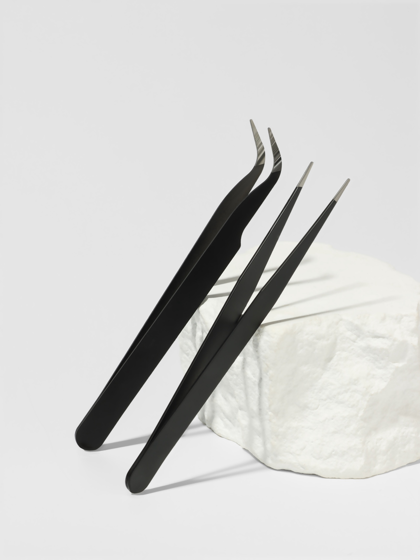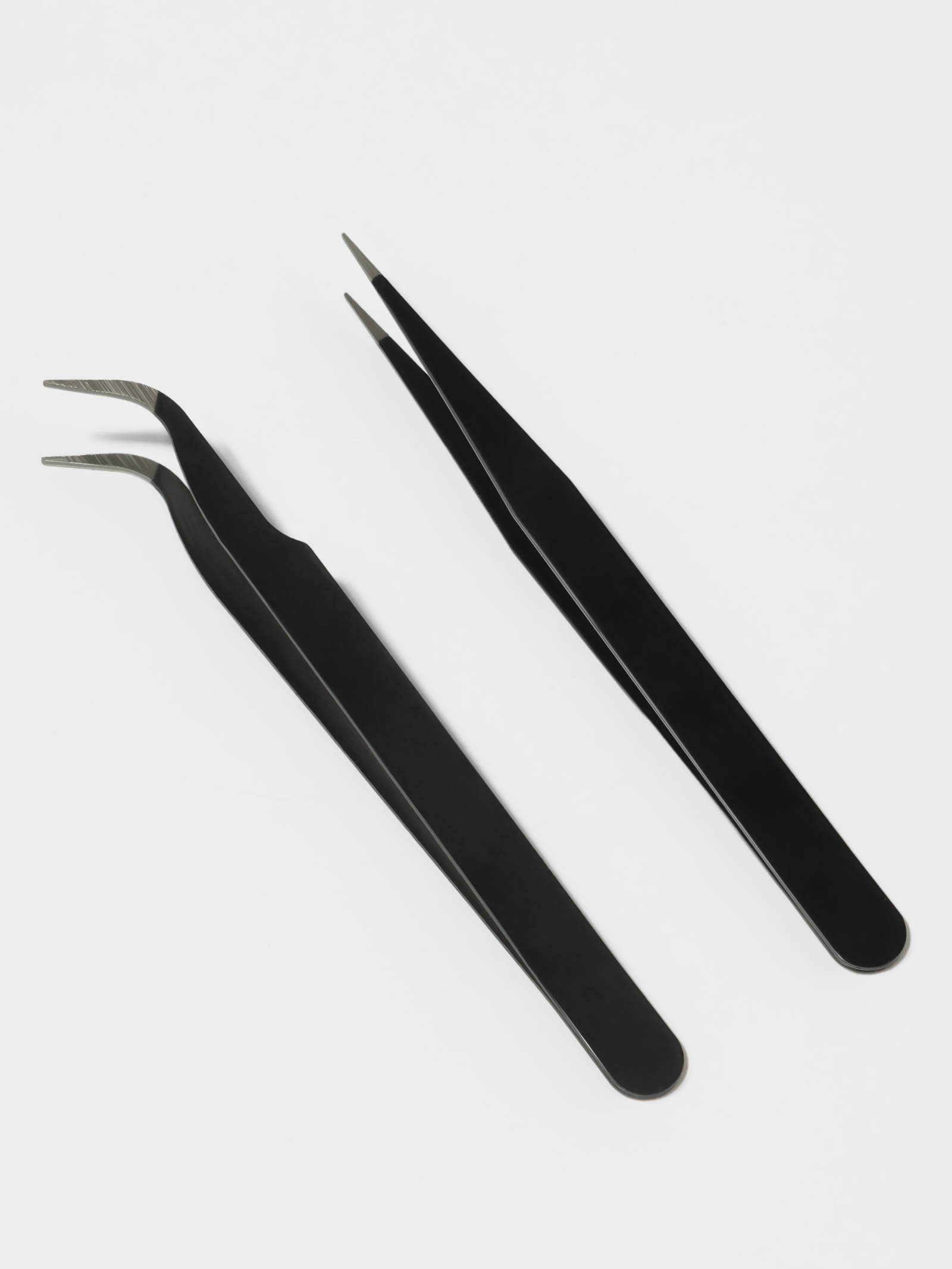 Пинцеты для наращивания ресниц, набор - 2 шт., 12.5 см, чёрные. Пинцет станет незаменимым помощником мастера в процедурах наращивания. Тонкие кончики надёжно цепляют пучки или волоски, ускоряют работу и делают процесс стерильным. Инструмент подходит для процедуры маникюра, с ним Вы легко украсите ногти мелким декором. Набор:Да|Цвет:Чёрный|Длина, см:12.5|В наборе, шт.:2|В упаковке, шт.:2|Вид упаковки:Пакет|Материал:Металл|Вид:Пинцет|Форма наконечника:Прямая|Форма наконечника:Загнутая|Загнутый:Да|Назначение:Для бровей и ресниц|Страна:Китай  развернуть описание ▼