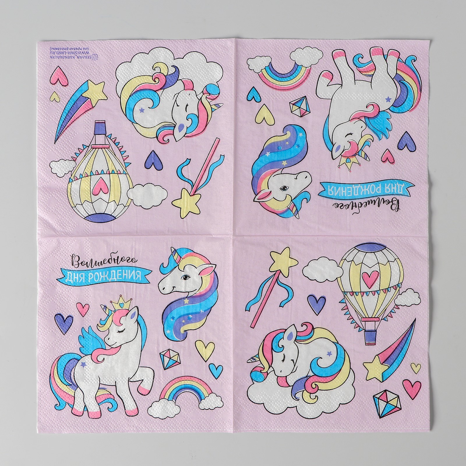 Cалфетки «волшебного дня рождения», 25х25см, набор 20 шт.