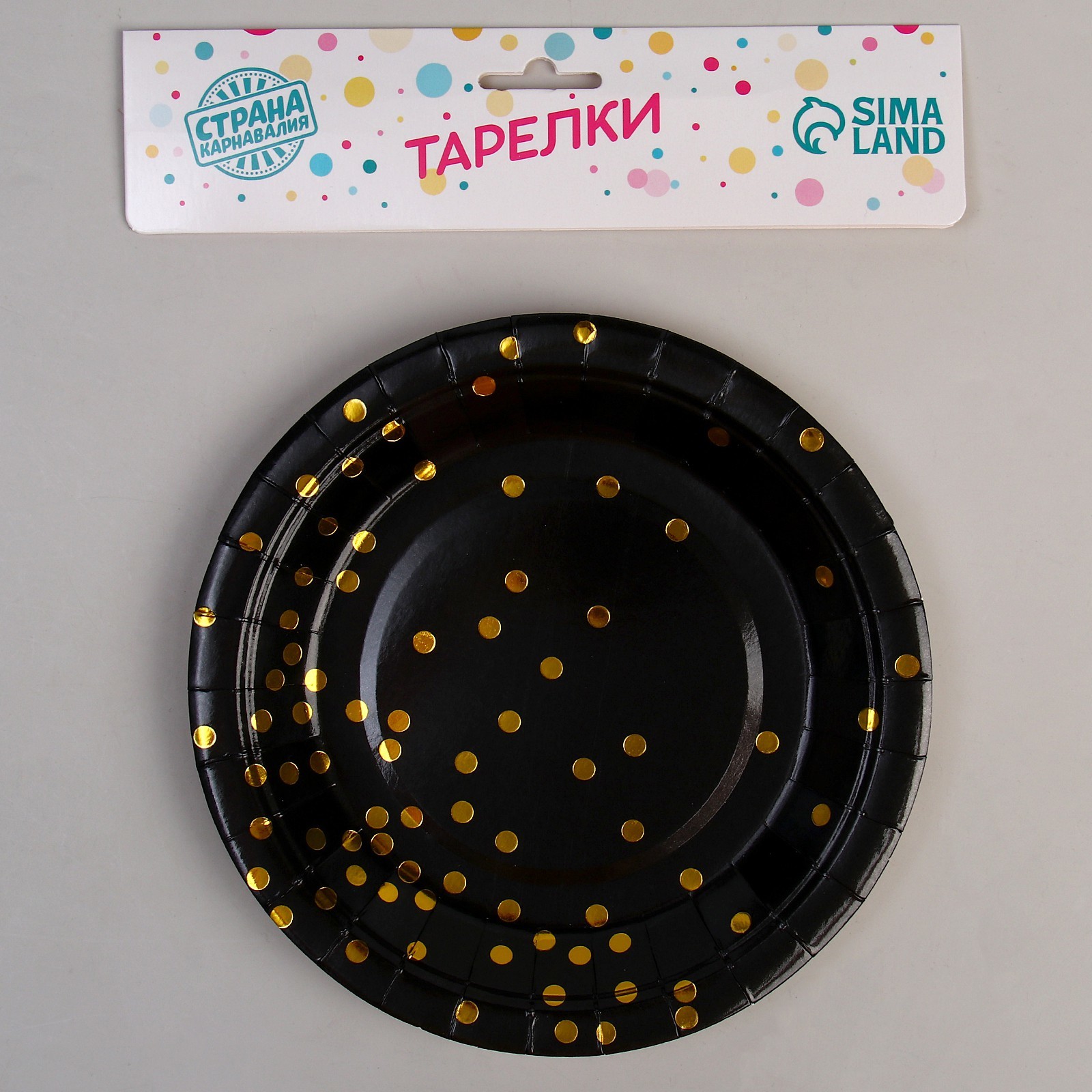 Тарелка бумажная «конфетти», с тиснением, 18 см, набор 6 шт., цвет чёрный