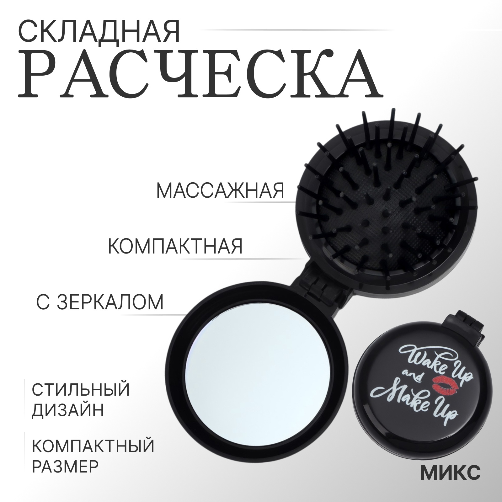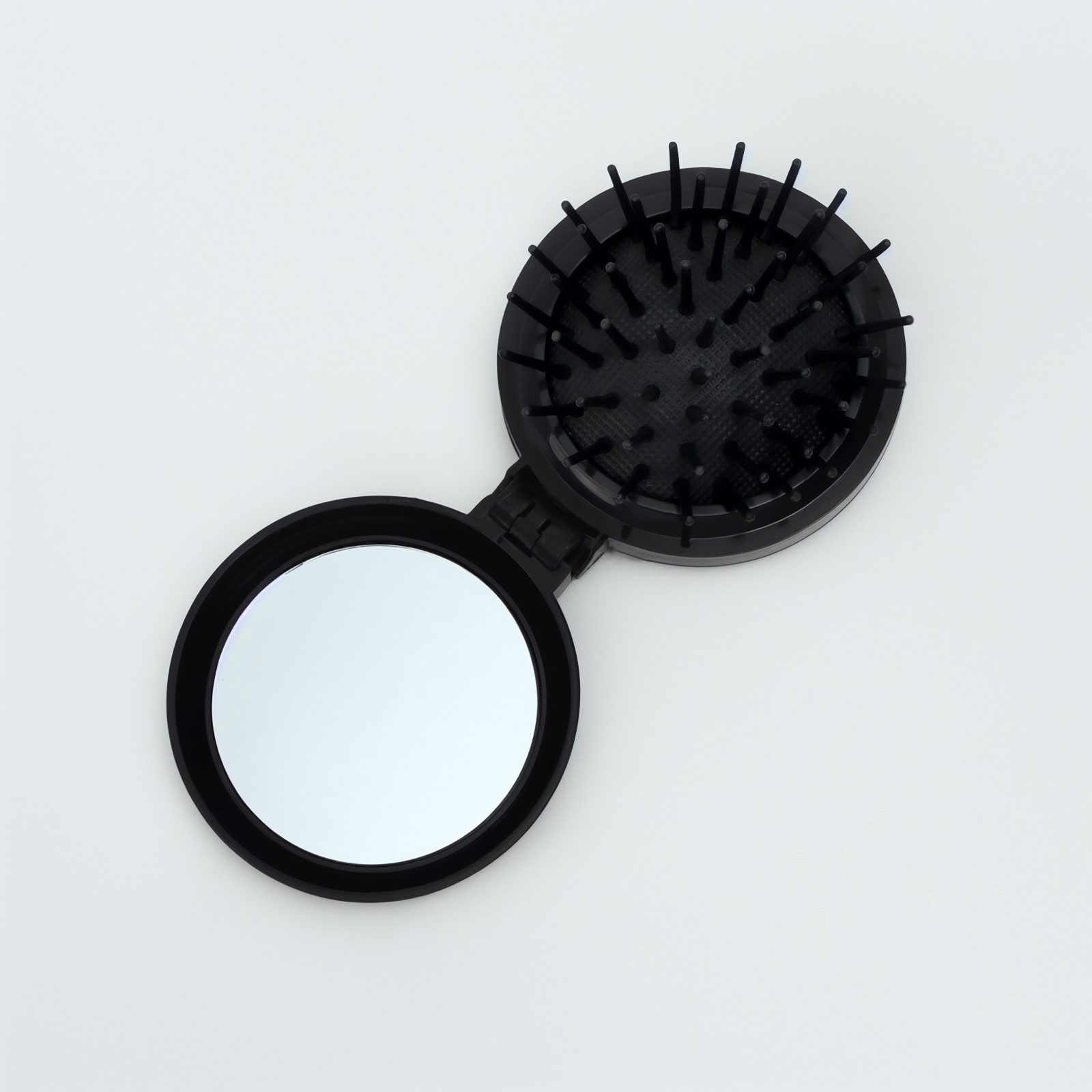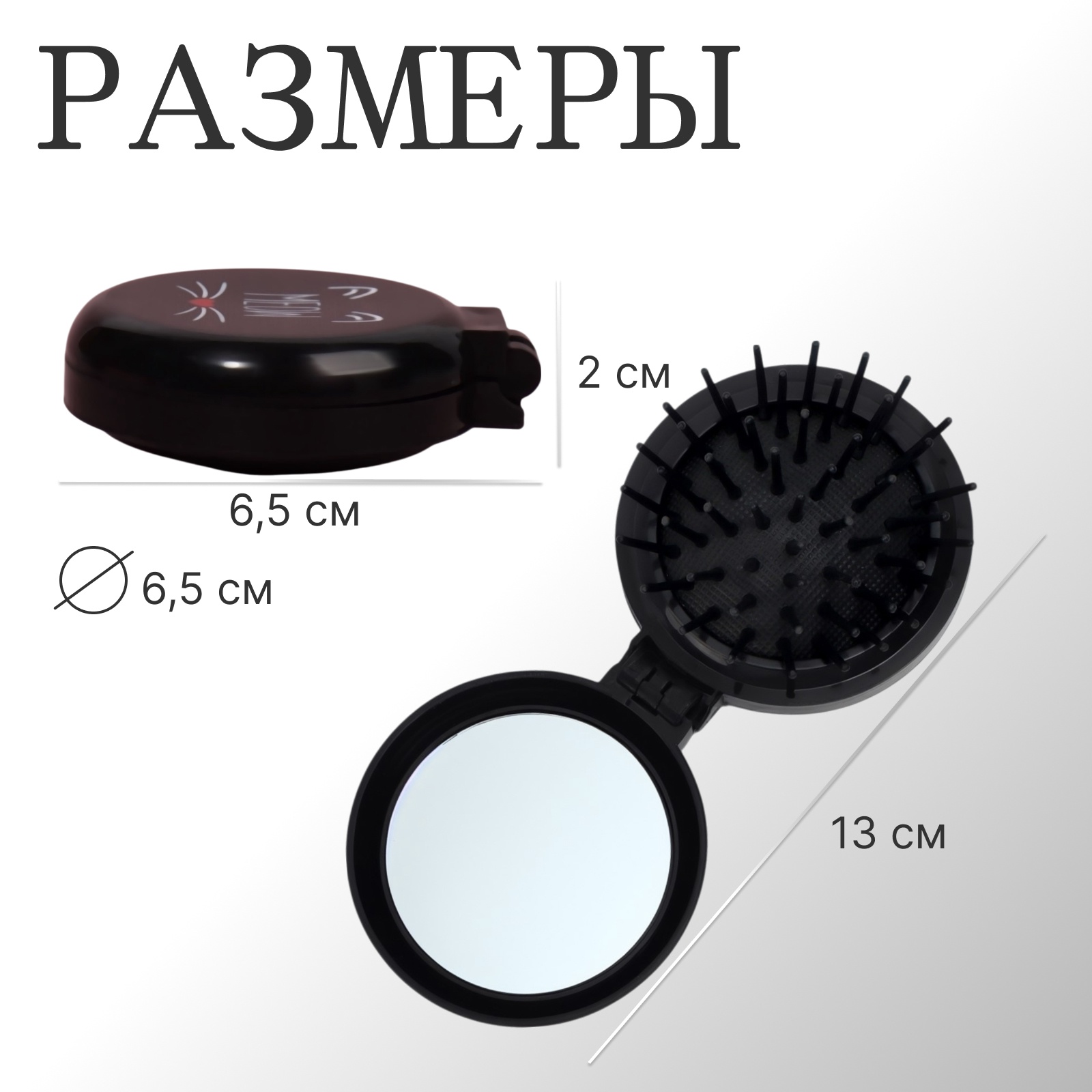 Расчёска массажная Black, складная, с зеркалом, D=6.5 см, микс