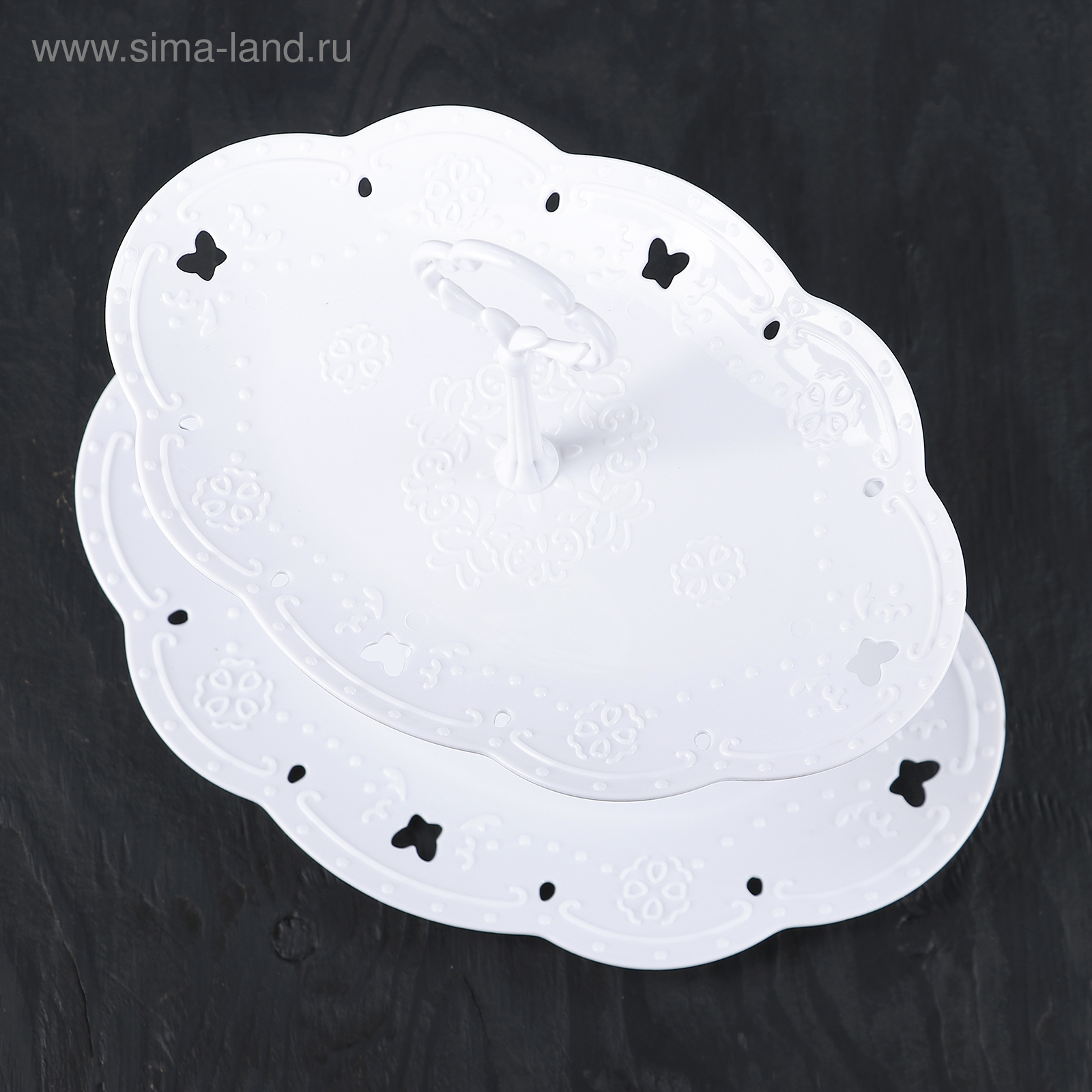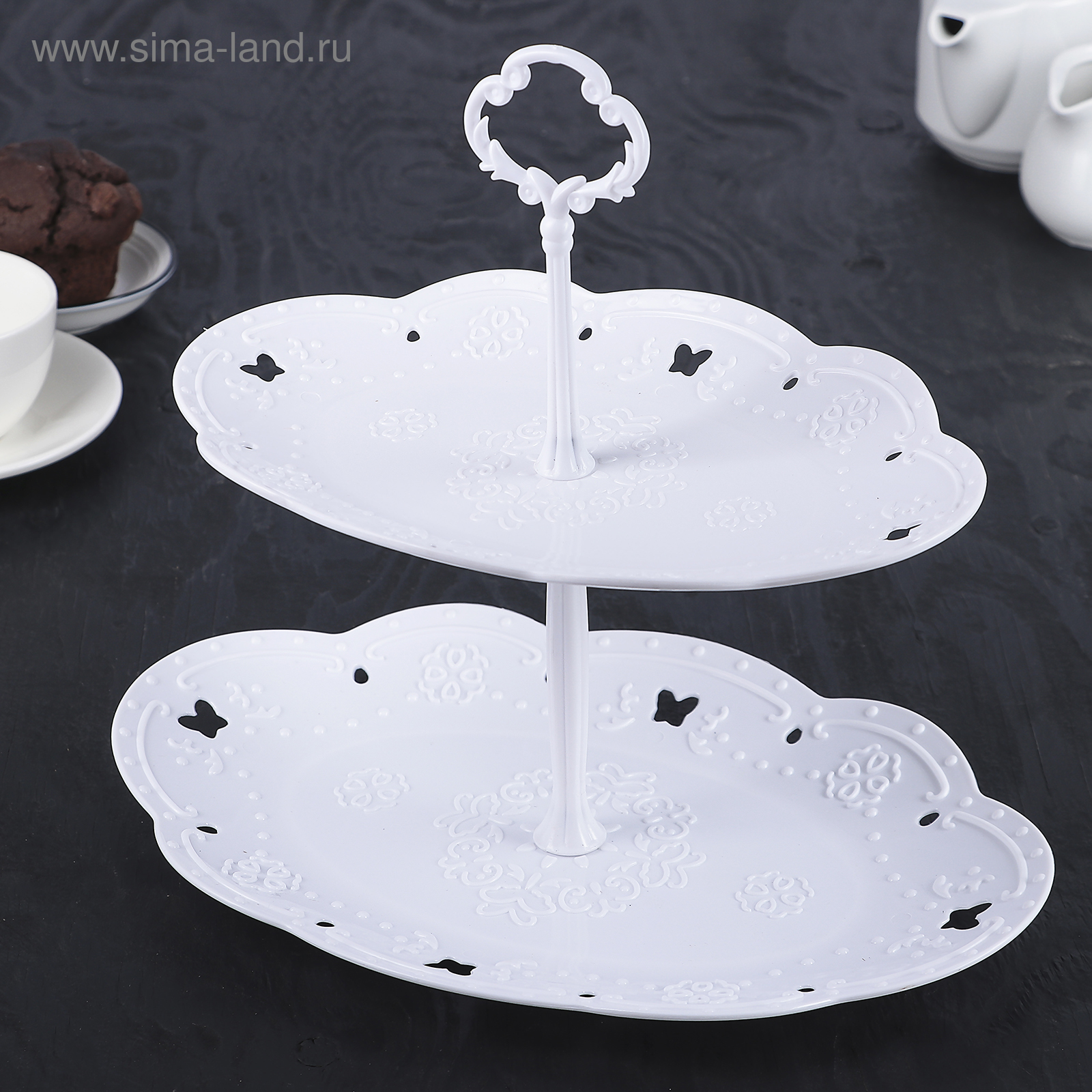 Этажерка-фруктовница овальная «вивьен», 2 яруса, 25,5x17,5/30x21,5 см, цвет белый