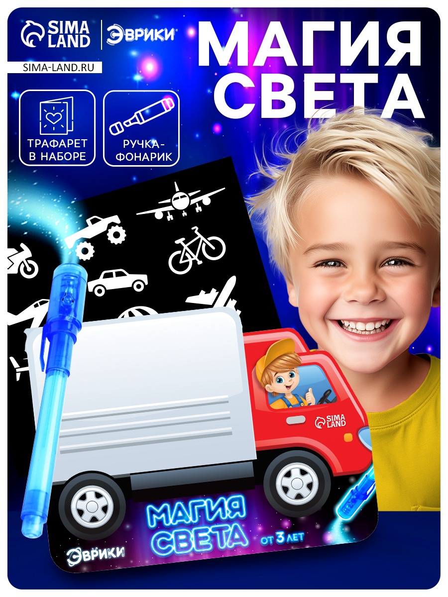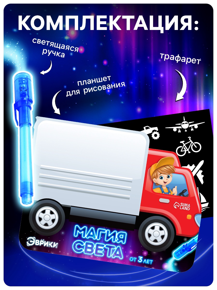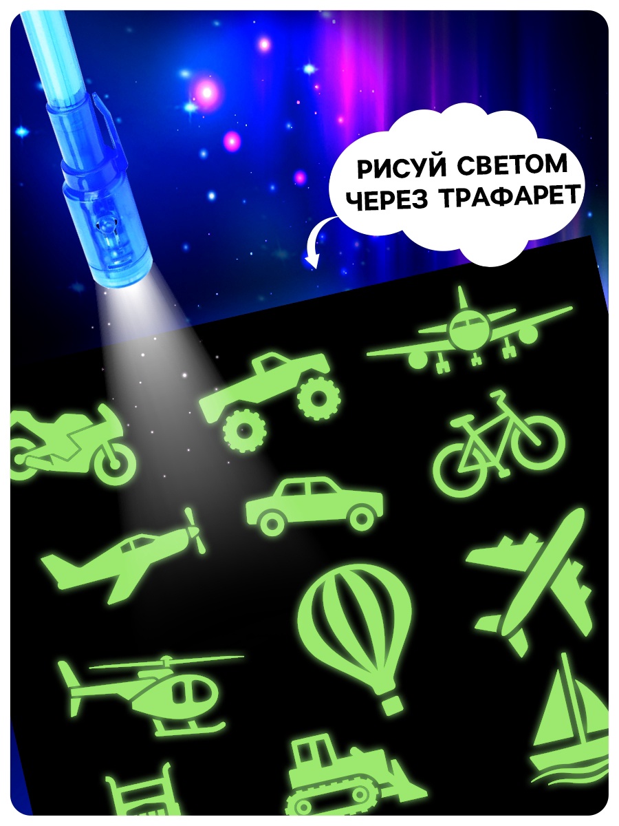 Набор для рисования в темноте «транспорт», а5, ручка с фонариком и невидимыми чернилами