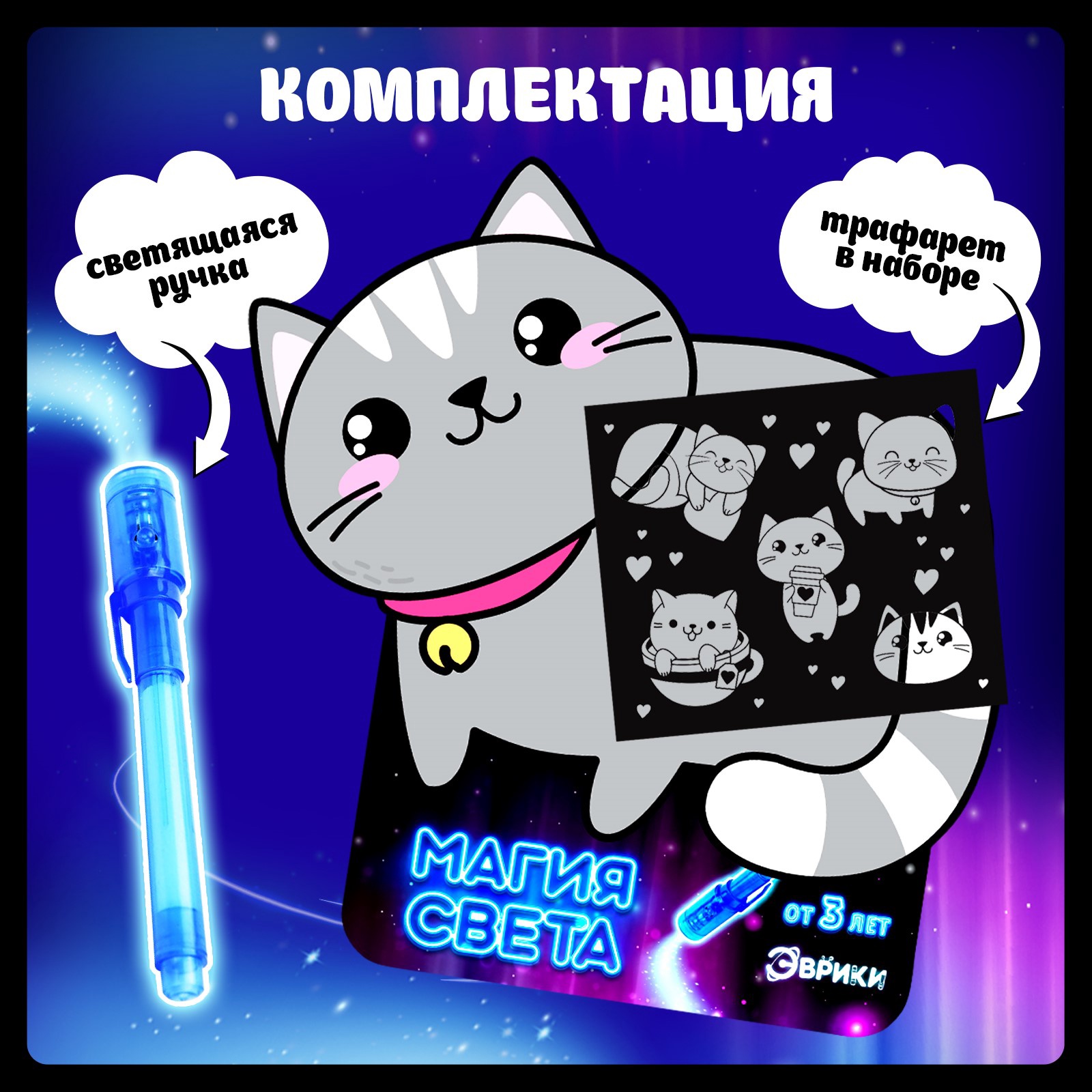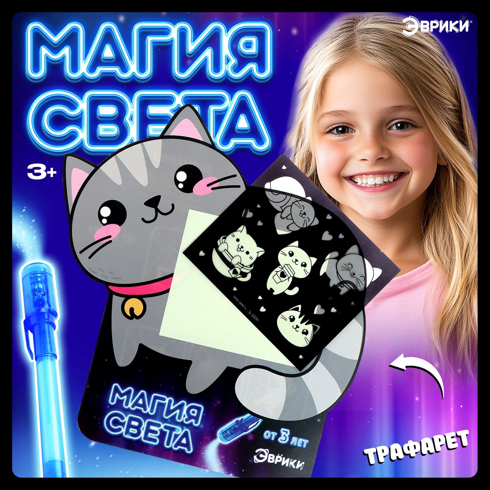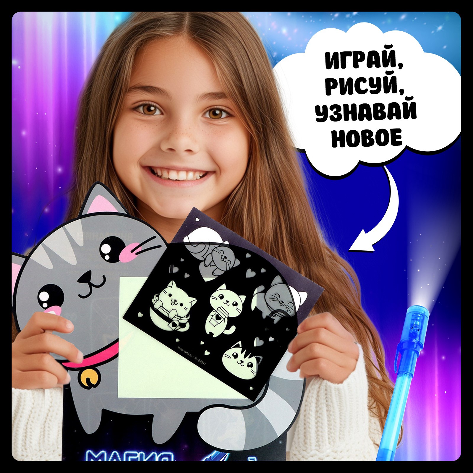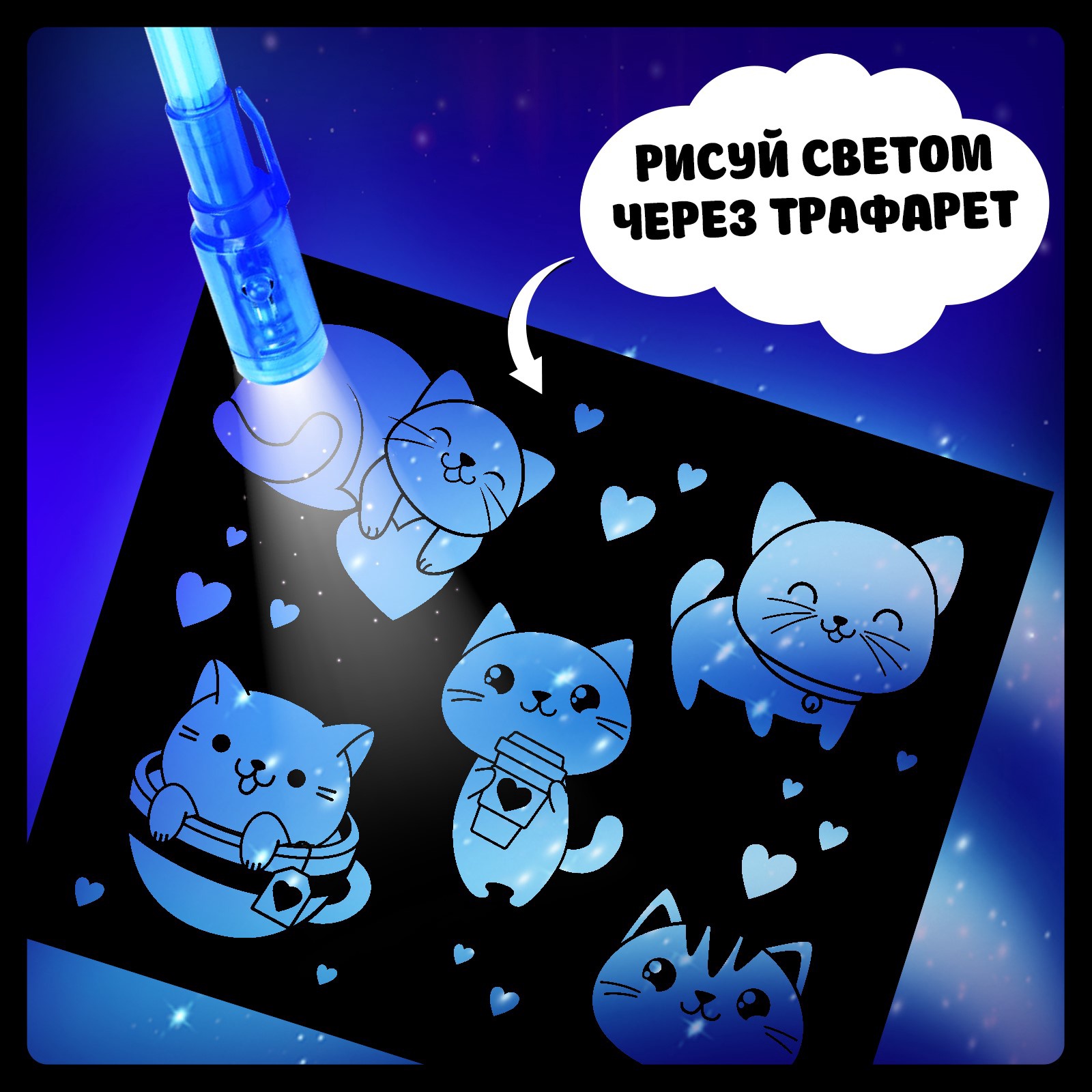Набор для рисования светом «котёнок», а5, ручка с фонариком и невидимыми чернилами