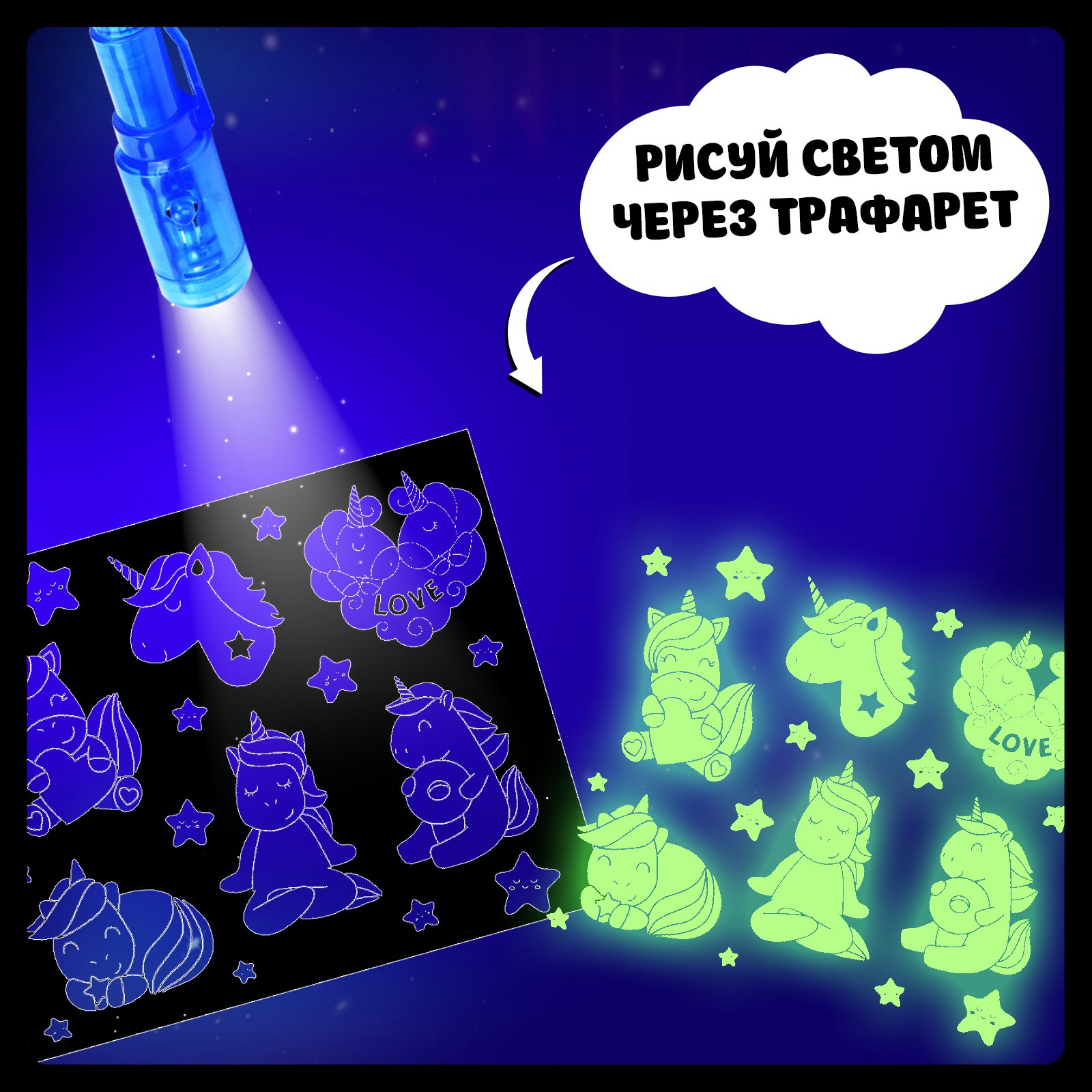 Набор для рисования светом «единорог», а5, ручка с фонариком и невидимыми чернилами