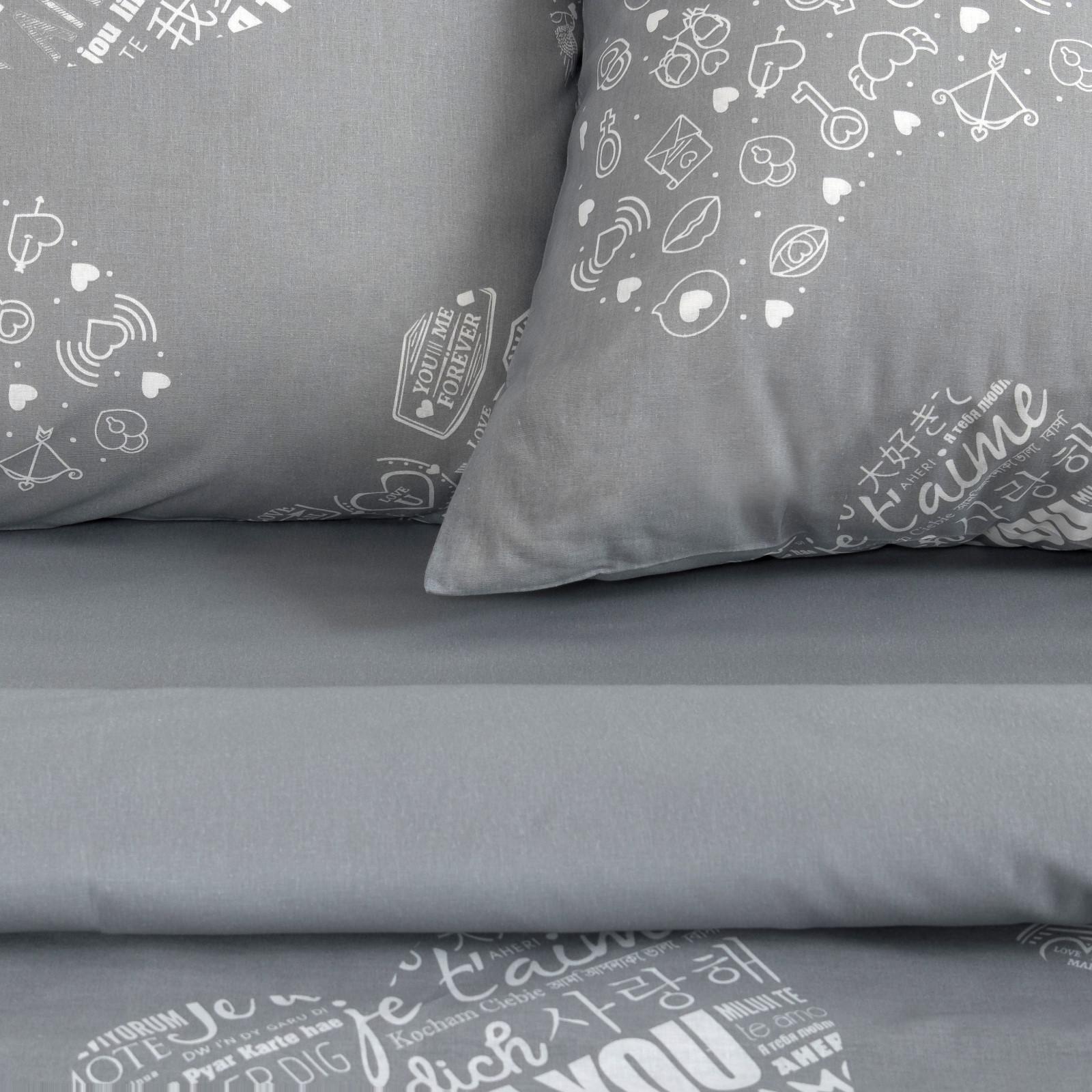 Постельное бельё евро «этель» te amo (вид 1), бязь. Постельное бельё «Этель: бязь» освежит интерьер любой спальни, внесёт в него новые краски и создаст в комнате неповторимый комфорт и атмосферу уюта. Чем хороша бязьx Комплекты из этой ткани — выбор практичных людей. Данный материал обладает массой положительных качеств. Он: приятный на ощупь;подходит даже для людей с чувствительной кожей;отлично пропускает воздух и впитывает влагу, поддерживая комфортный микроклимат в постели на протяжении всей ночи;неприхотлив в уходе;не даёт усадки после стирки.Особенности постельного белья Постельное бельё соответствует стандартам ГОСТ 31307-2005 и имеет европейский сертификат качества Oeko-Tex.09.HRU.73228.Изделия изготовлены из 100 % натурального экологически чистого хлопка.Плотность ткани составляет 125 г/м .Для нанесения рисунков использовались качественные европейские красители. Именно поэтому цвета надолго останутся яркими и насыщенными, а аллергия и раздражения пройдут мимо.Простыня без поперечного шва!Все внутренние швы дополнительно обработаны оверлоком, чтобы избежать естественного осыпания края.Вход в пододеяльник и наволочки оформлен клапаном, простыня без резинки.Комплектация: Пододеяльник, 200 217 см — 1 шт.; простыня 220 240 см — 1 шт.; наволочка, 70 70 см — 2 шт. Рекомендации по уходу за изделиями: стирка при температуре не выше 40 °C без использования отбеливающих средств. Цвет:Серый|Размер наволочки, см:70 х 70|Ткань:Бязь|Плотность, г/м :125|Размер:Евро|На молнии:Нет|На резинке:Нет|Тематика:С сердечками|Вид упаковки:PVC-пакет|Тематика праздника:14 Февраля|Декоративные элементы:Без элементов|Рекомендации по уходу:Бережный режим глажки|Рекомендации по уходу:Стирка при 40 °С|Рекомендации по уходу:Не отбеливать|Состав ткани:Хлопок|Количество наволочек:2|Размер пододеяльника, см:200 х 217|Размер простыни, см:220 х 240|Простыня в комплекте:Да|Особенности простыни:Стандартная|Вид застёжки наволочки:Клапан|Вид застёжки пододеяльника:Без застёжки|Страна:Россия  развернуть описание ▼