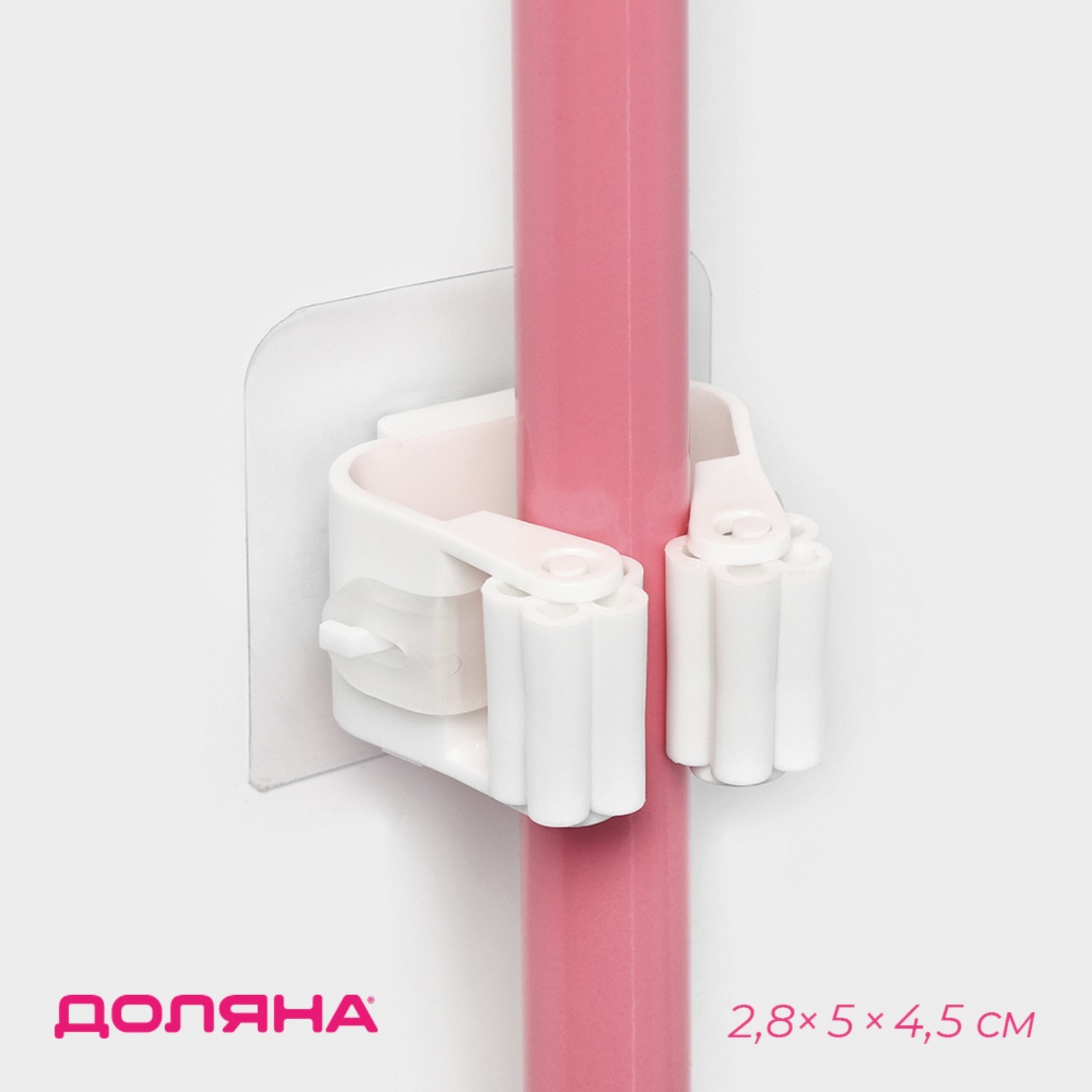 Держатель для уборочного инвентаря на липучке доляна, 2,8x5x4,5 см, липучка 5,5x5,5 см, цвет микс