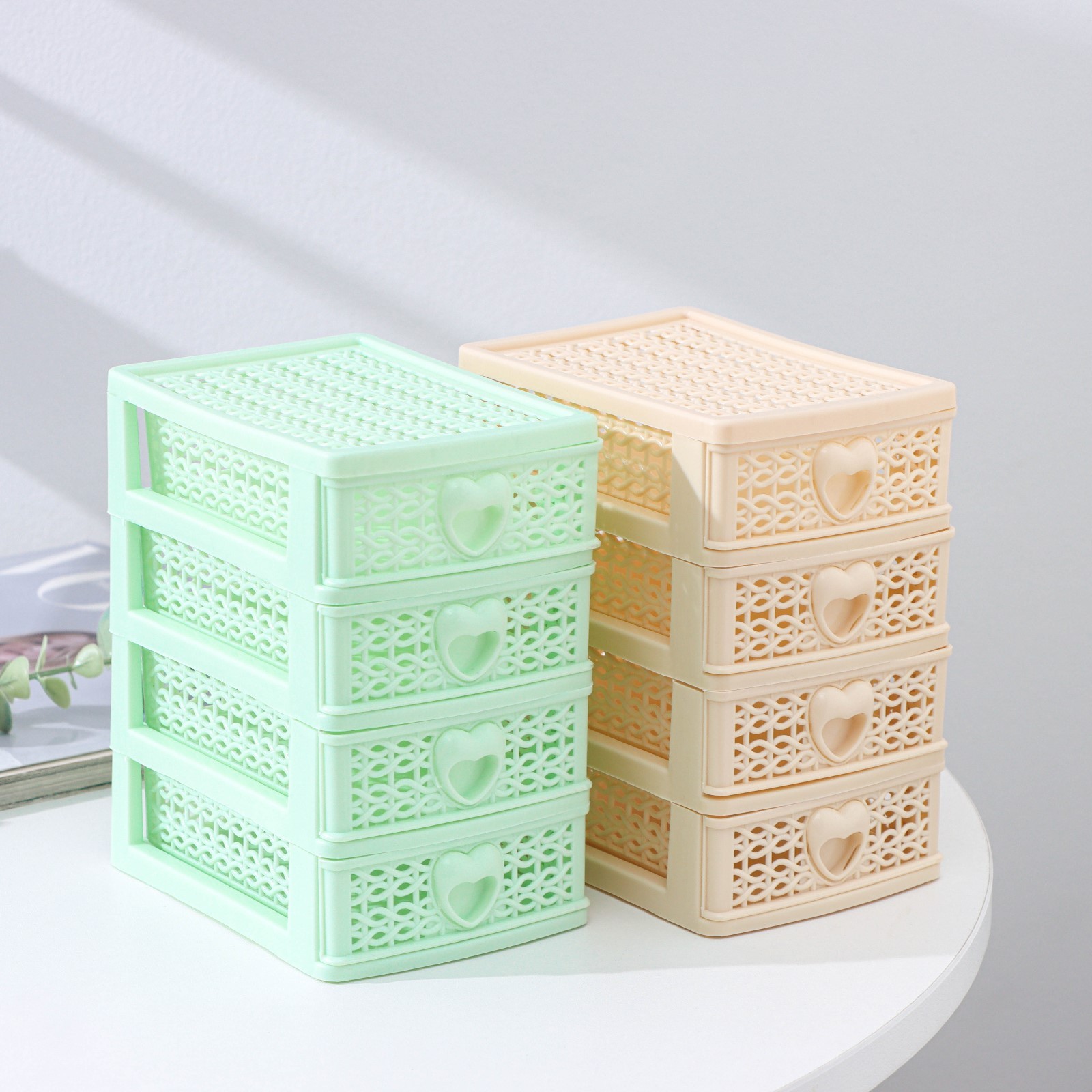 Пластиковый предмет мебели предназначен для хранения мелочей, принадлежностей для шитья, творчества и других аксессуаров. Изделие оснащено выдвижными ящиками с ручками.