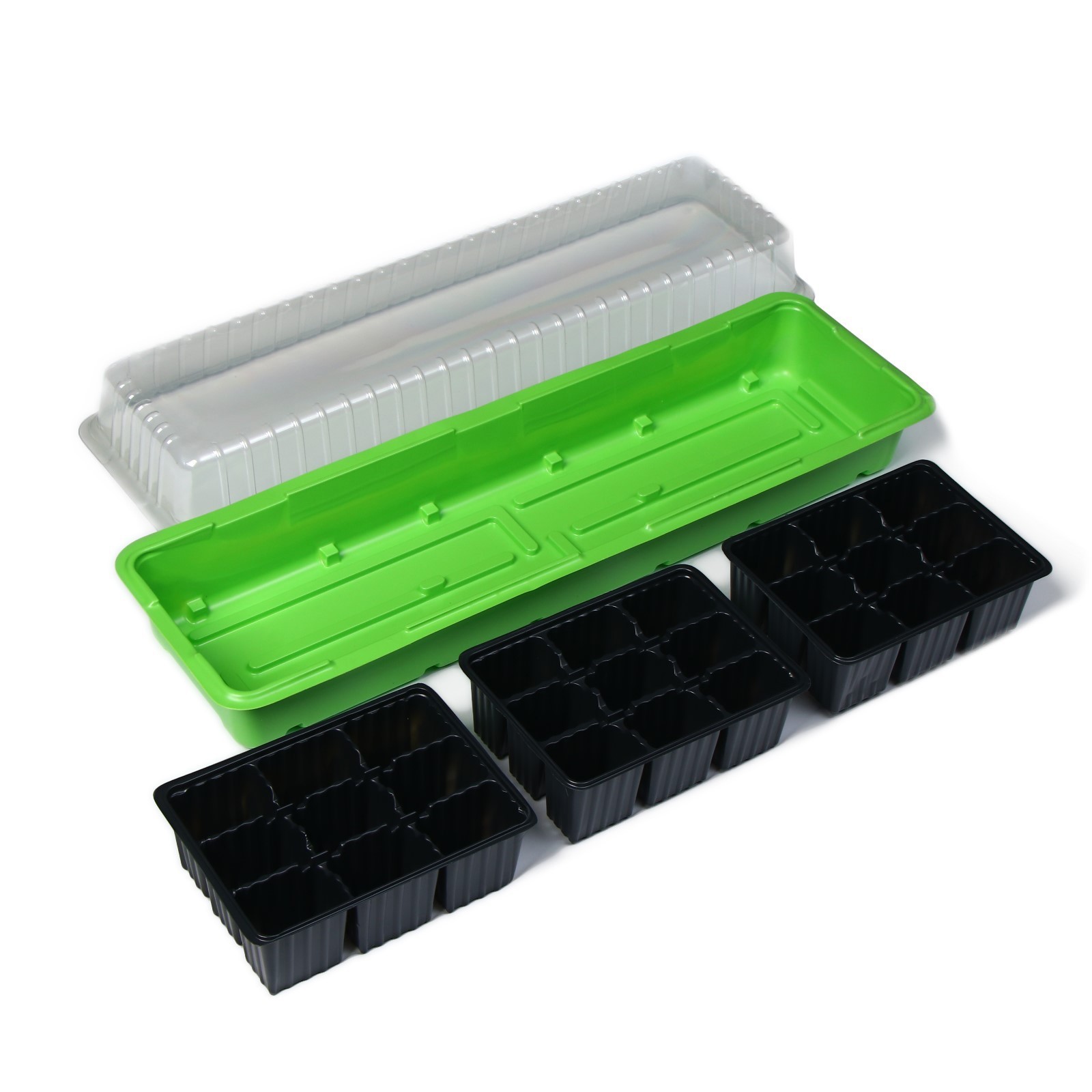 Мини-парник для рассады, 56 17 12 см, 3 вставки, 27 ячеек, пластик, Greengo
